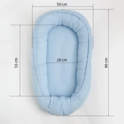 Le délicat cocon en mousseline pour bébé New Baby offre un espace sûr et douillet pour le sommeil et le repos. Grâce à son tissu en coton doux et à son garnissage anti-allergique, il convient aux enfants de 0 à 12 mois. Il se place facilement dans un lit bébé, sur un canapé, au sol ou dans une poussette, pour un confort à la maison comme en voyage.
