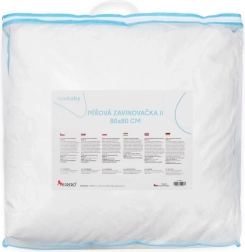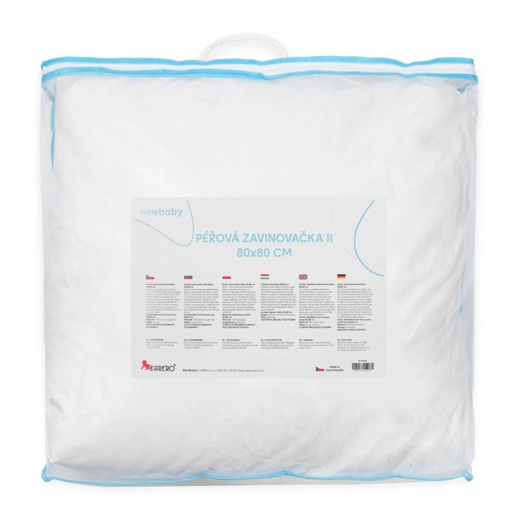 La forme carrée 80×80 cm sans pointe allongée permet un emmaillotage facile et un usage polyvalent – la couverture peut aussi être utilisée comme petite couette. La housse en 100 % coton downproof est agréable au toucher et douce pour la peau sensible des enfants. Le produit est fabriqué en République tchèque à partir de duvet soigneusement nettoyé et testé.