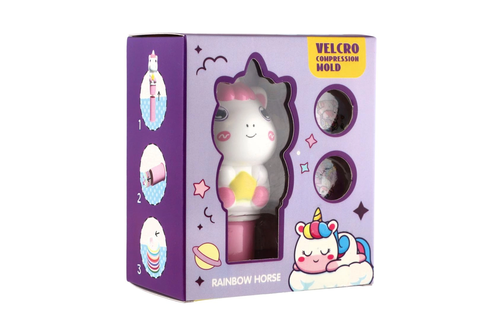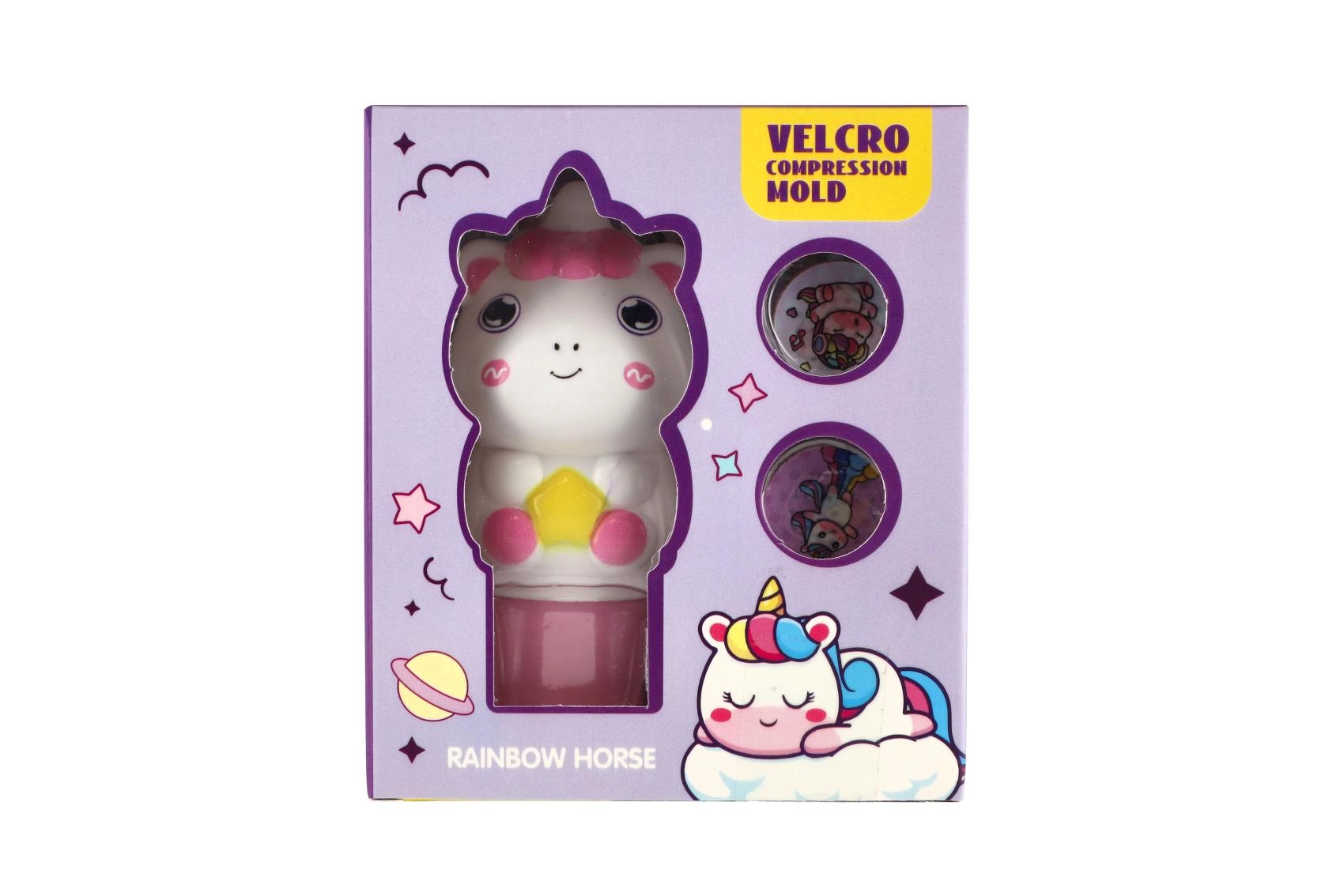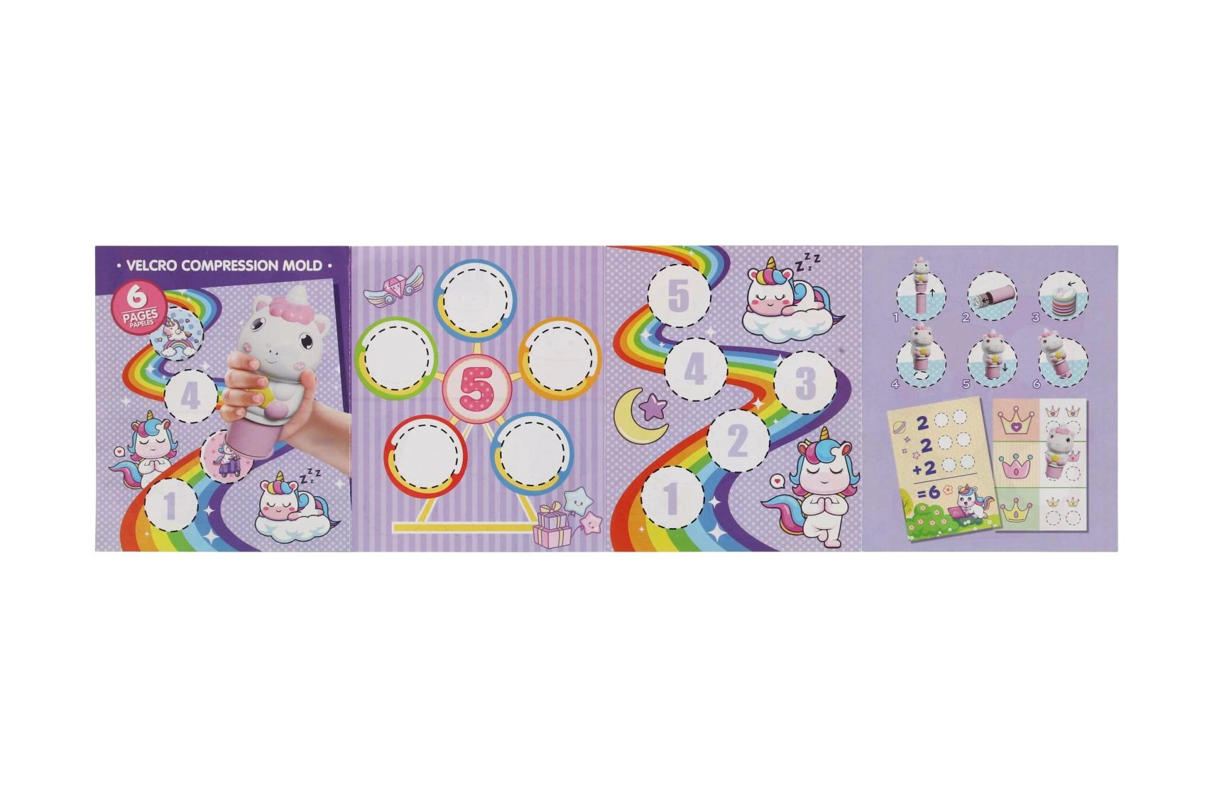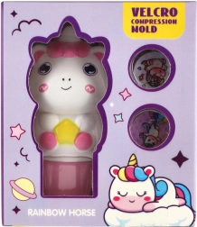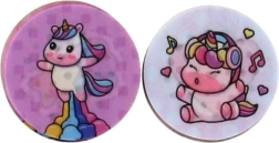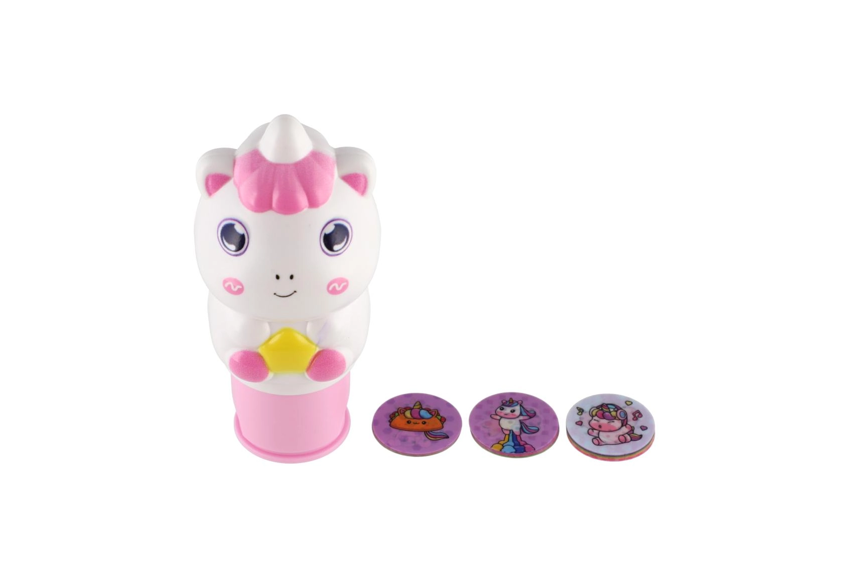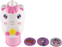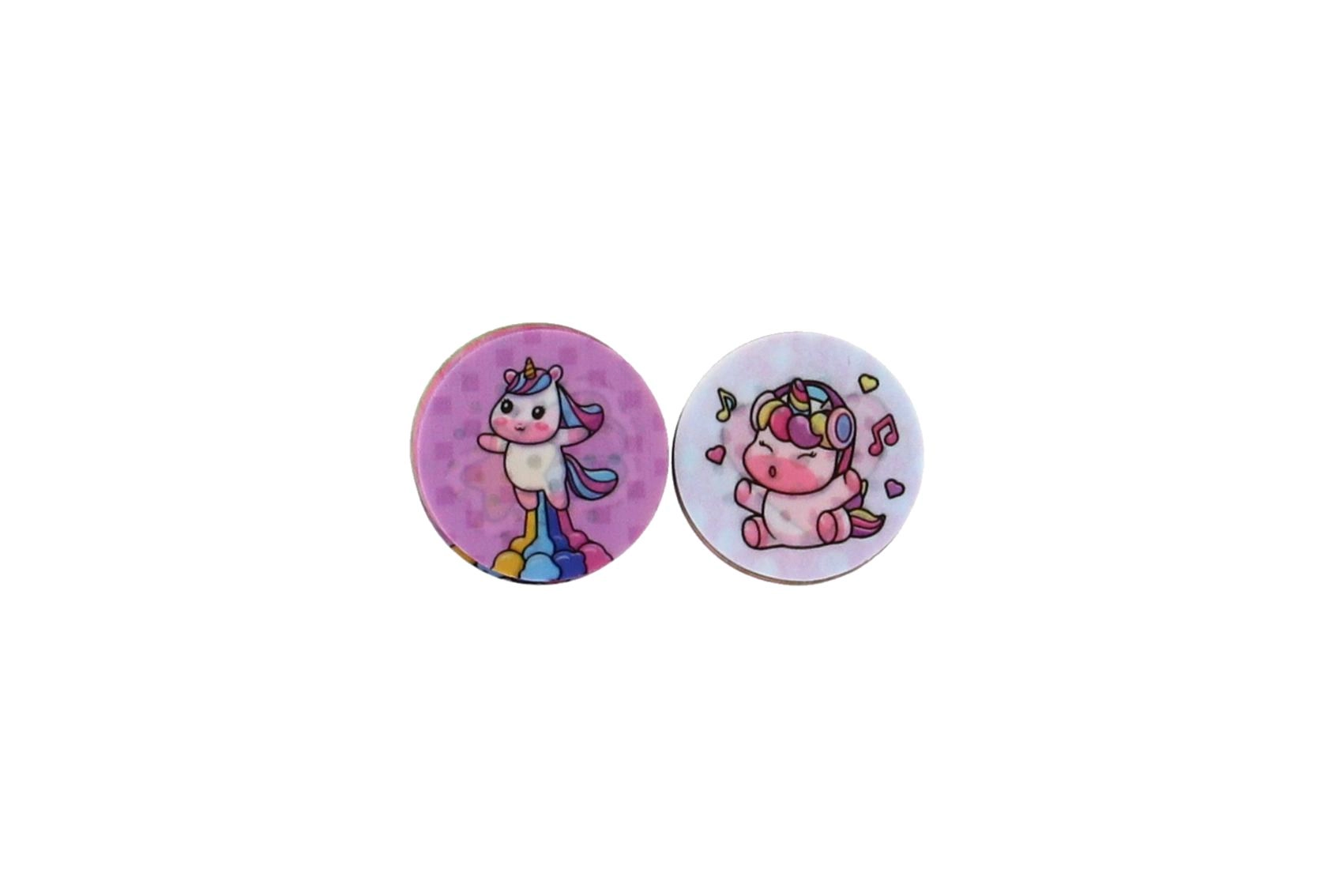 Le set comprend des disques ronds avec différents dessins de licornes, faciles à échanger pour créer à chaque fois une nouvelle empreinte.