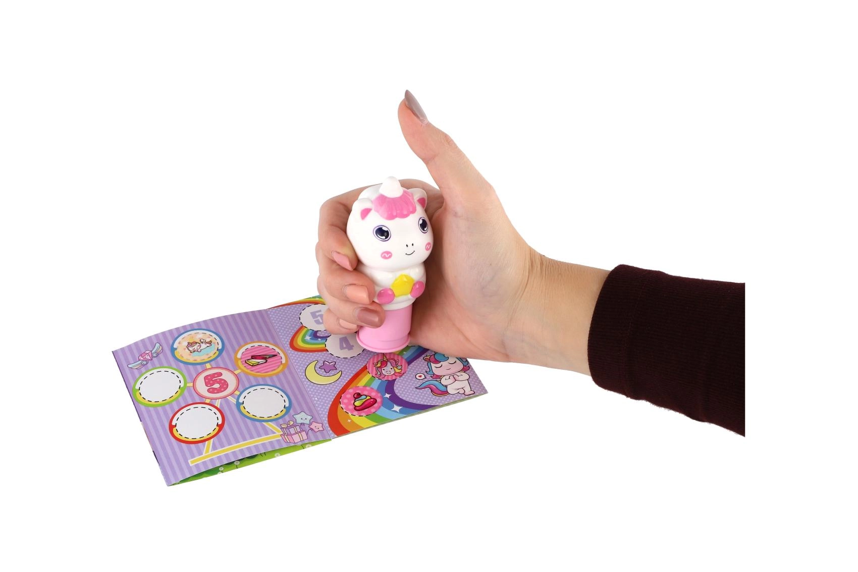 Le tampon est prêt à l’emploi immédiatement. L’ensemble de motifs licorne et la possibilité de compléter les projets artistiques avec des autocollants font de ce jouet un cadeau parfait pour les petits fans de licornes.