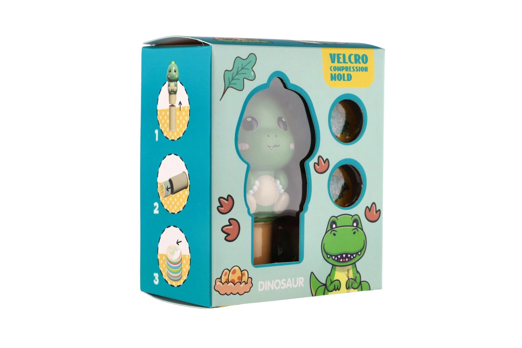 Ce kit créatif avec tampon dinosaure stimule l’imagination des enfants et leur motricité fine. Sa forme ergonomique est adaptée aux petites mains pour une utilisation confortable. Des pastilles autocollantes colorées à motifs de dinosaures et une feuille thématique permettent aux enfants de coller leurs créations.