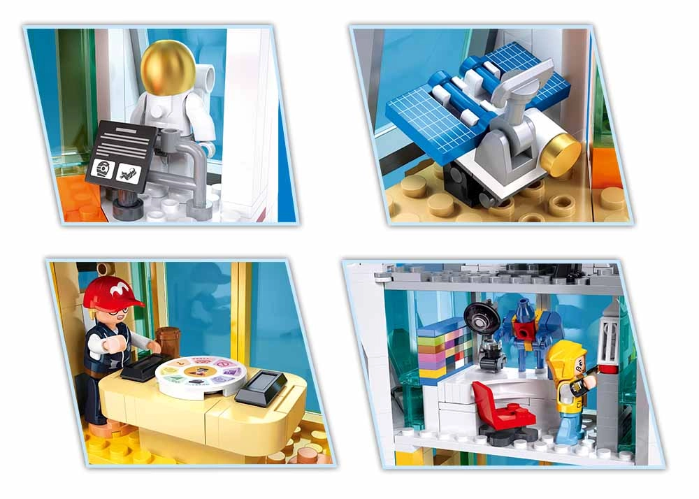 Chaque étage propose des possibilités de jeu différentes : simulation de l’espace, observation des étoiles, fonctionnement du bâtiment et maintenance. Les figurines incluses et le taxi urbain enrichissent vos histoires pour des heures de divertissement.
