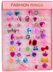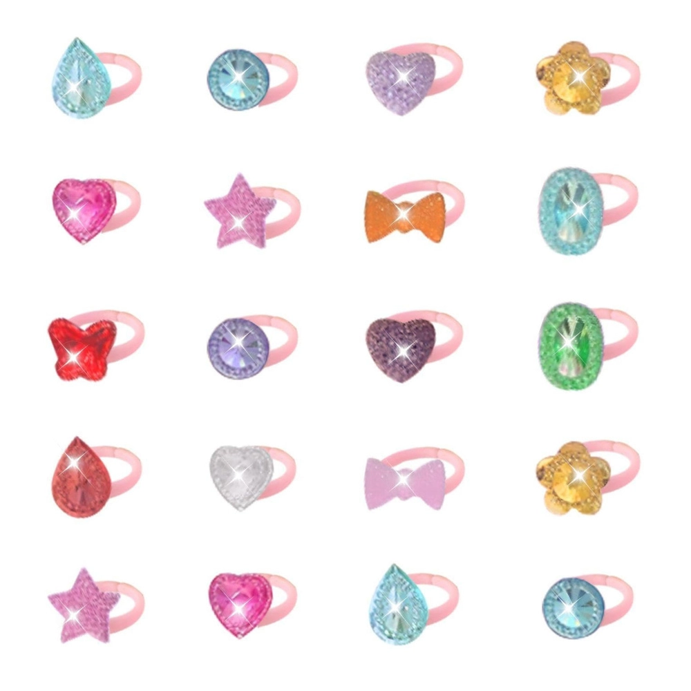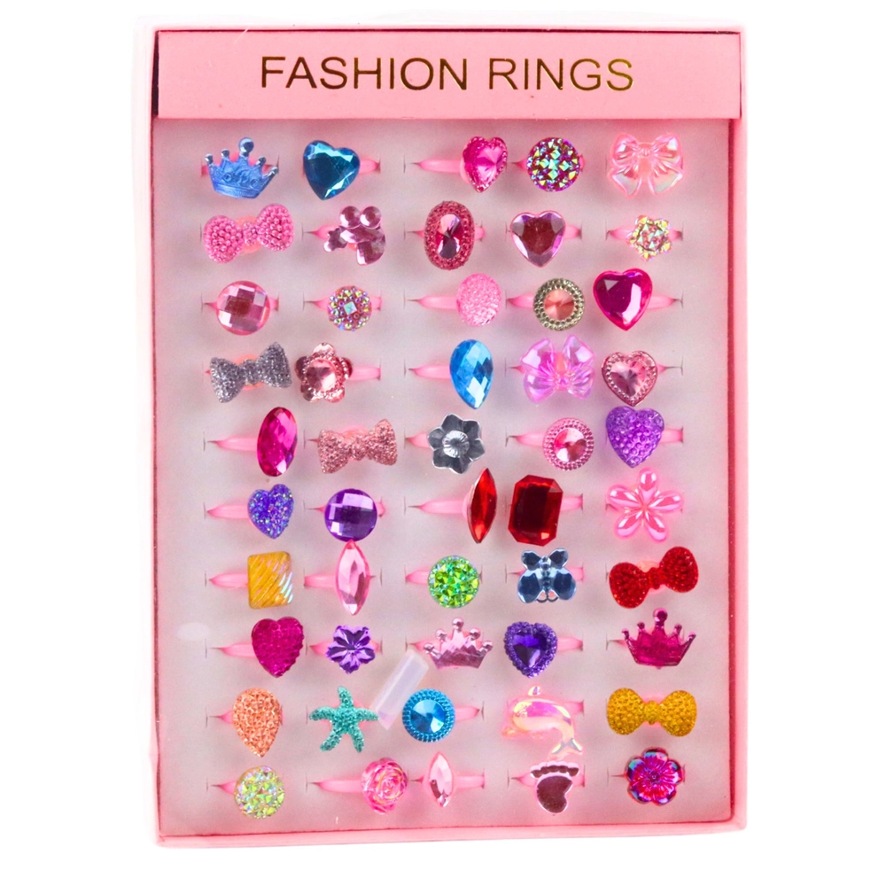 Un set de jeu plein de fantaisie : 50 bagues colorées avec des motifs de cœurs, d’étoiles, de couronnes, de nœuds, de fleurs et de grands “cristaux” raviront toutes les petites amatrices de bijoux fantaisie. Les strass facettés brillants reflètent joliment la lumière et apportent un éclat unique à chaque costume comme aux jeux du quotidien.