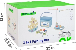 Deux cannes à pêche en bois avec aimants et des animaux colorés transforment la table en océan. Les enfants entraînent précision, patience et coordination œil-main tout en pêchant selon les formes et les couleurs.