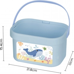 Tout se range dans un seau résistant avec anse dont le couvercle sert de plateau de jeu. L’ensemble stimule la coordination œil-main, la reconnaissance des couleurs et des formes ainsi que le jeu créatif. Un excellent choix pour un divertissement intelligent à la maison comme en déplacement.