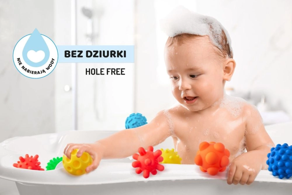 La conception sans trous empêche la rétention d’eau et d’impuretés – les balles se rincent facilement et sont idéales aussi pour le bain.