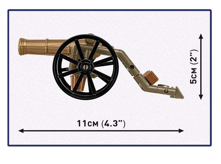 Le set comprend des baguettes de chargement/nettoyage, des boulets, une caisse à munitions et des compléments pour mettre en scène des tableaux historiques et dioramas.
