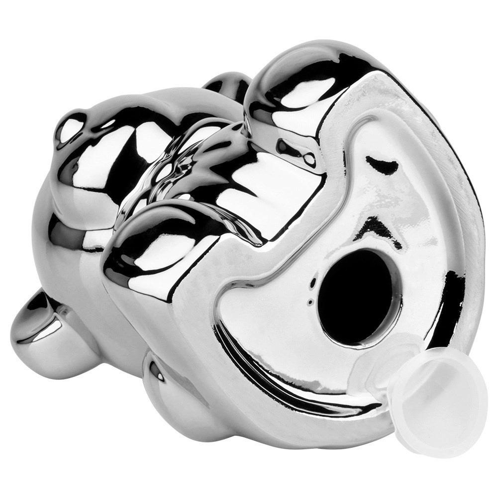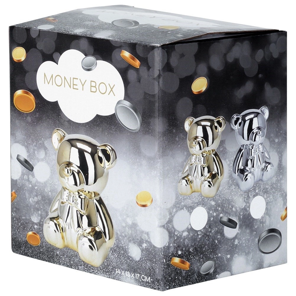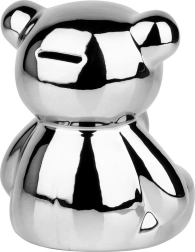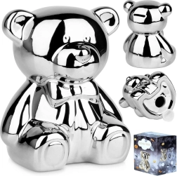 Cette tirelire ours en céramique argentée allie design glamour moderne et praticité. Son éclat miroir apporte une touche de luxe à votre intérieur et encourage l’épargne régulière de pièces comme de billets.