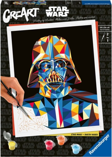 Avec ce coffret, devenez peintre l’espace d’un instant : il suffit de suivre les numéros, chaque numéro sur la toile correspondant à une couleur précise. Grâce au modèle de qualité et aux peintures acryliques, vous créez facilement une image au motif STAR WARS emblématique, que vous placerez une fois sec dans le cadre inclus.
