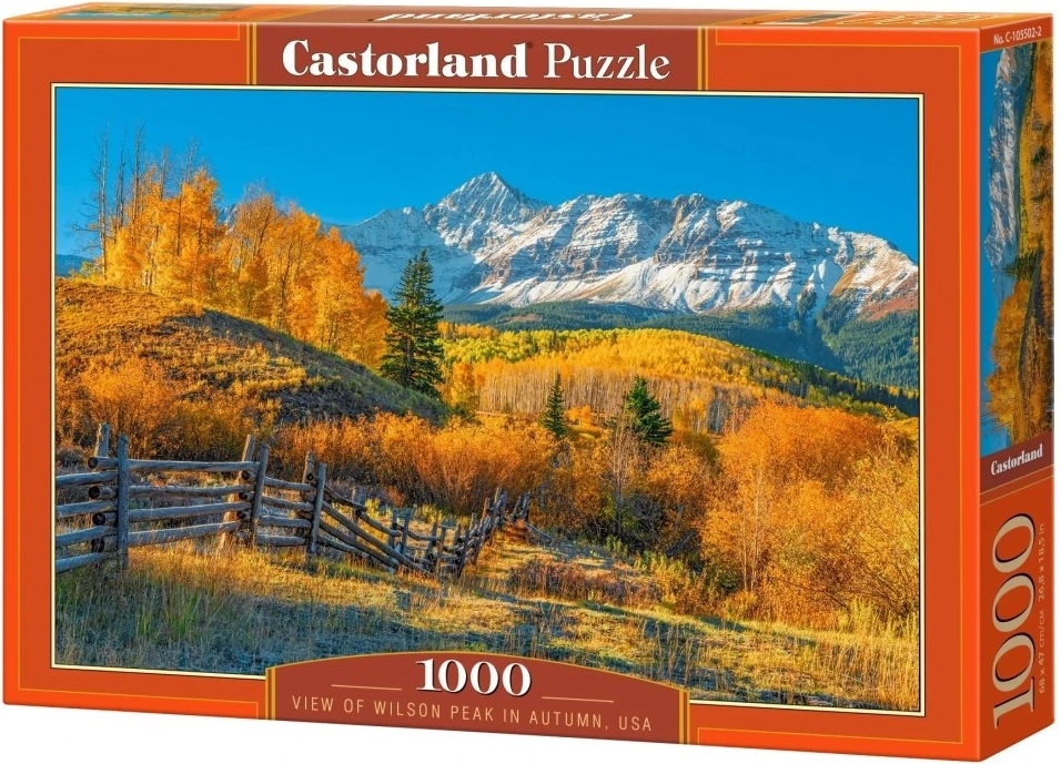 Profitez d’un moment de détente avec ce puzzle de qualité signé Castorland. Ce magnifique panorama au motif Vue automnale sur Wilson Peak propose 1000 pièces pour un assemblage agréable et une image finale d’environ 68 × 47 cm.