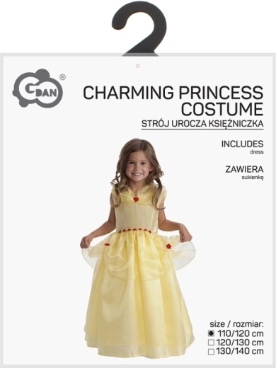 Ce costume ravissant, inspiré d’une héroïne de conte de fées, transformera chaque petite fille en véritable princesse. La robe d’un jaune riche possède une jupe multicouche pour un beau volume, des surpièces en mousseline et des applications florales pour une allure festive.