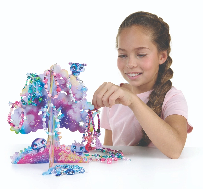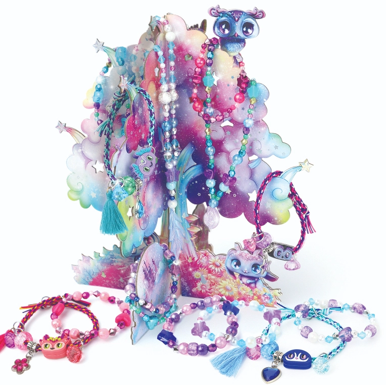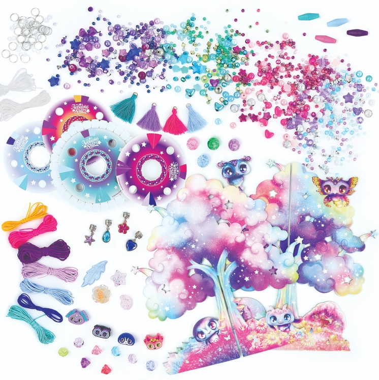 Découvrez l’univers de la création avec le kit créatif Nebulous Stars, qui ravira tout jeune designer de bijoux. La boîte contient tout le nécessaire pour fabriquer des bracelets et colliers uniques – des fils colorés et des perles jusqu’aux pendentifs stylés. Les bijoux terminés peuvent être joliment suspendus sur l’Arbre étoilé, qui sert à la fois de présentoir et de décoration de chambre.