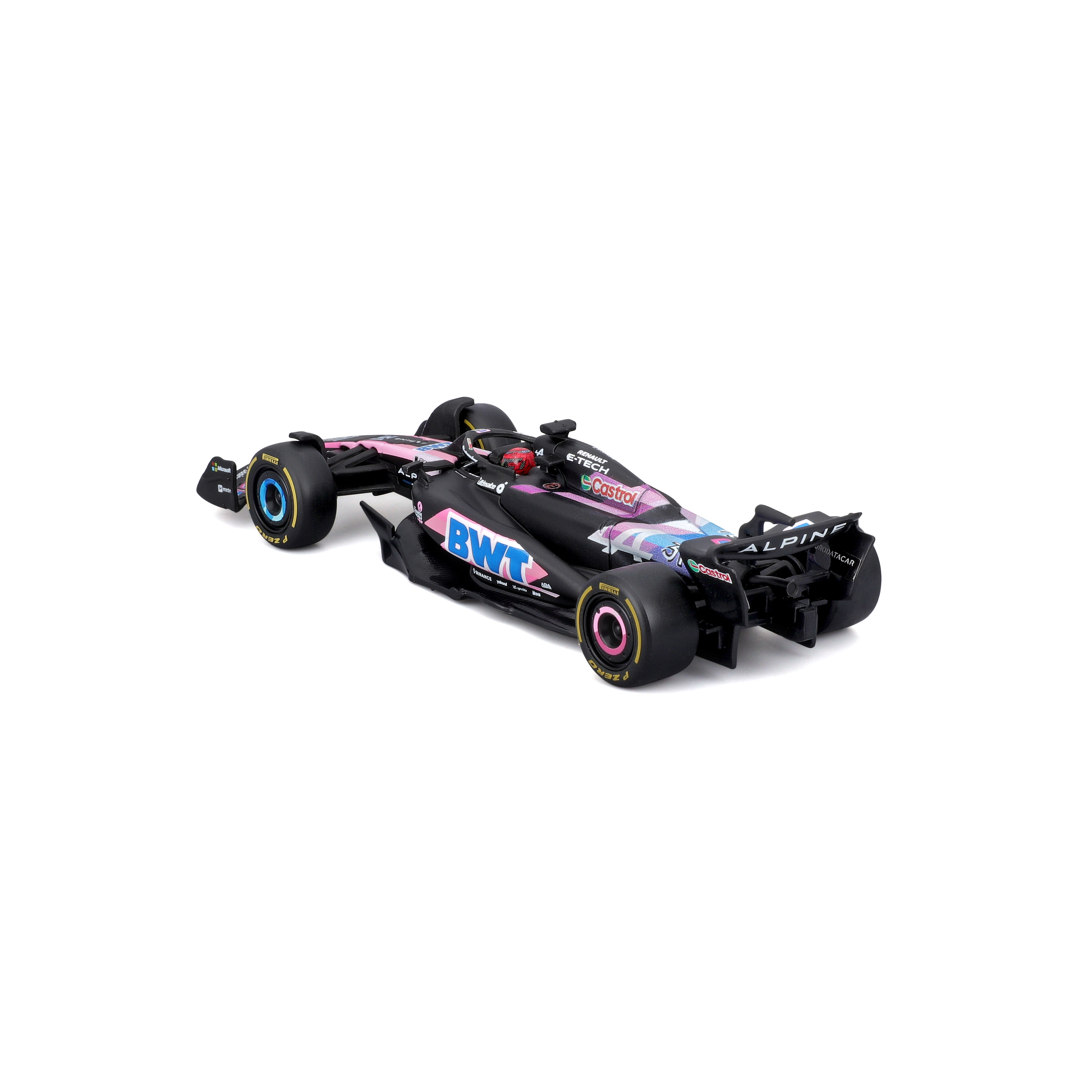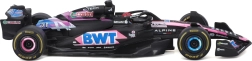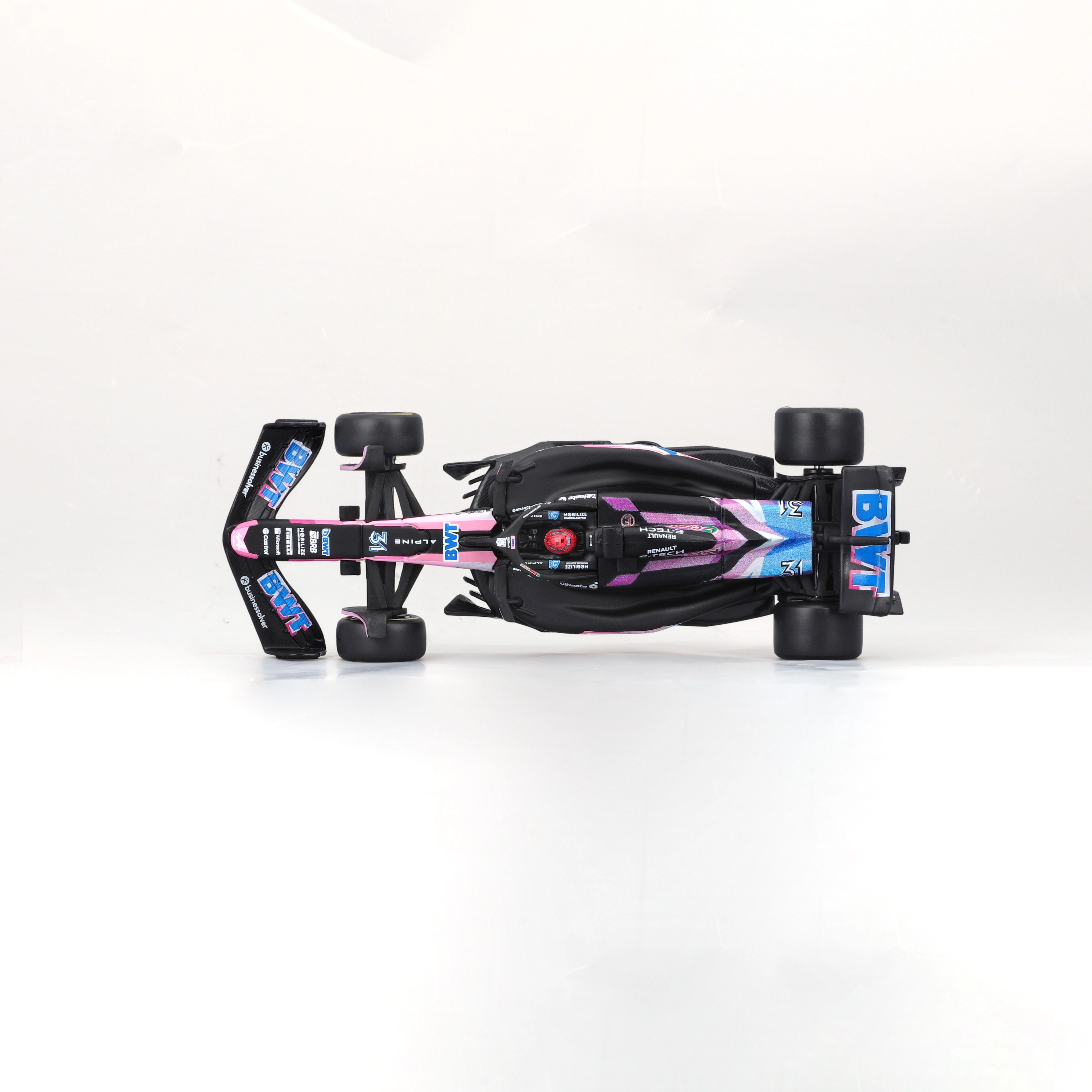 Ce modèle officiellement licencié Alpine F1 Team A524 (2024) par Bburago à l’échelle 1:43 offre une combinaison exceptionnelle de finition et d’authenticité. Base noire avec accents rose‑bleu BWT, marquages fins des sponsors et éléments aérodynamiques incluant l’aileron avant, le halo et l’aileron arrière restituent avec précision le véritable monoplace d’Esteban Ocon.