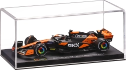 Grâce à la figurine d’Oscar Piastri dans le cockpit, le modèle semble dynamique même en exposition statique. La boîte vitrine transparente sur socle protège de la poussière et permet d’admirer les détails sous tous les angles – idéale pour une étagère, un bureau ou la chambre d’un fan.