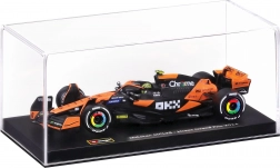 Le modèle est présenté dans une vitrine transparente sur socle, qui le protège de la poussière tout en offrant une exposition attrayante. Les pneus slicks en gomme, les ailerons réalistes et les marquages précis soulignent sa valeur de collection. Parfait pour compléter une collection d’équipes et d’éditions spéciales de la saison de course 2024.