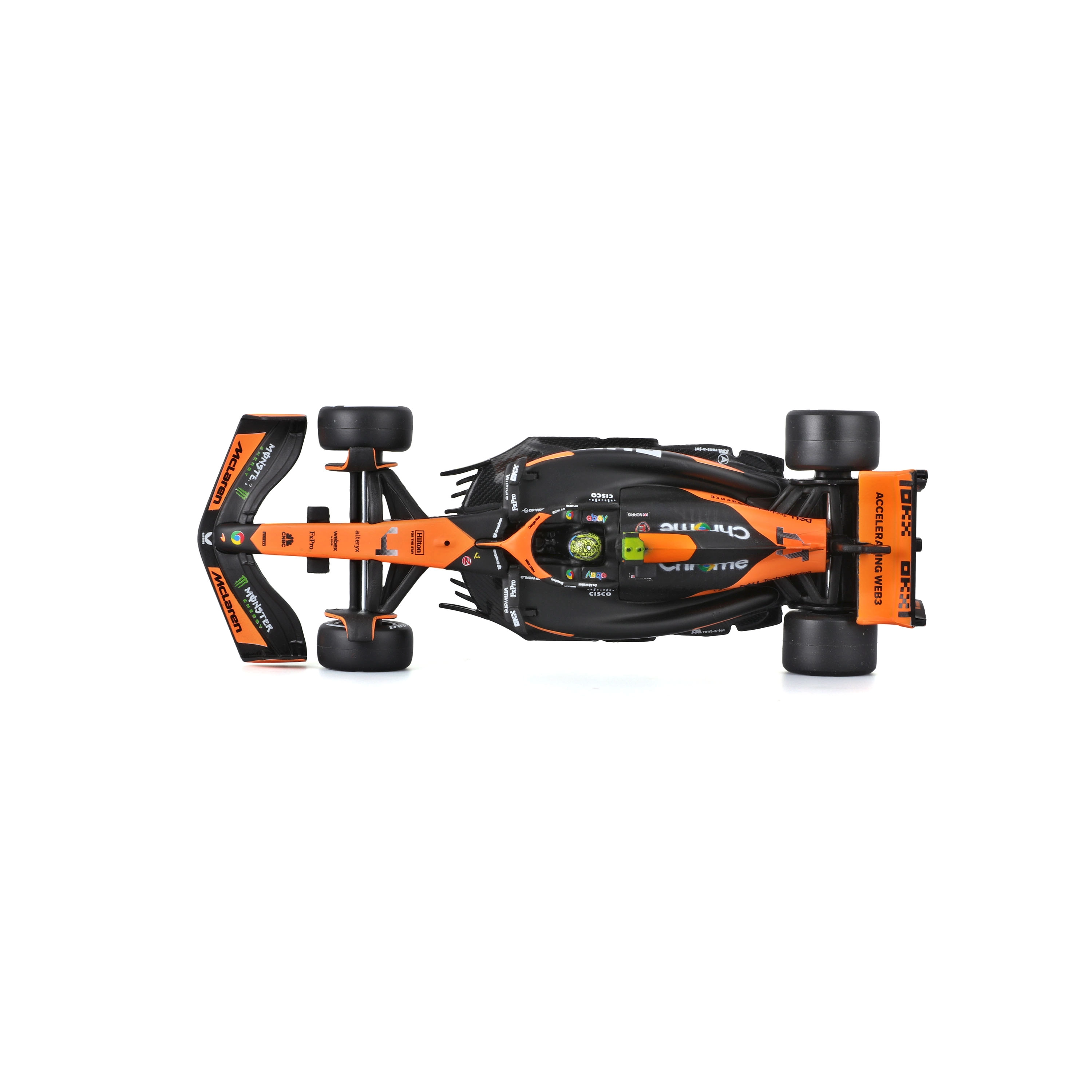 Livrée orange‑noire détaillée, logos des sponsors et numéro 4 – tout conforme à la monoplace réelle de Lando Norris pour la saison 2024.