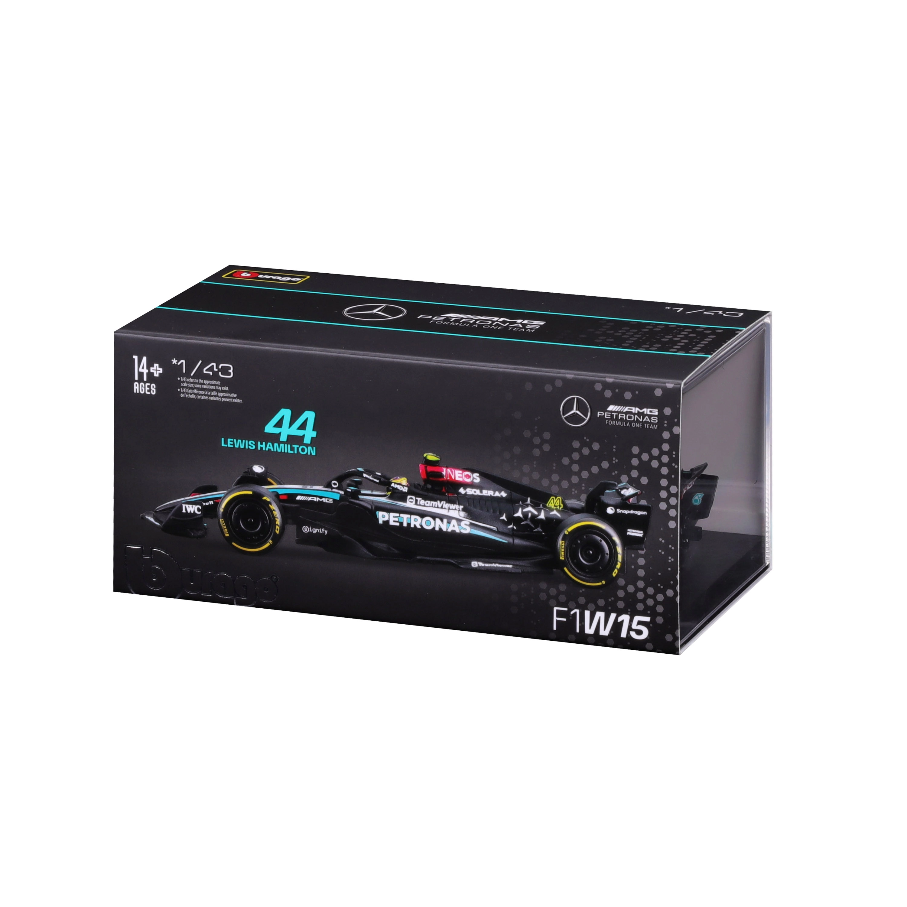 Le modèle de collection Bburago à l’échelle 1:43 représente fidèlement la voiture Mercedes‑AMG F1 W15 (2024) en spécification pilote avec le numéro 44. Il offre un marquage détaillé, une aérodynamique réaliste, des roues librement rotatives et est livré dans une vitrine de protection pour une présentation élégante à l’abri de la poussière.