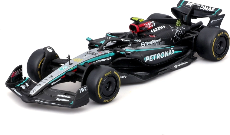 Découvrez la miniature précise du prototype de course du Mercedes‑AMG Petronas F1 Team en édition W15 Performance (2024). Le modèle Bburago restitue fidèlement les formes aérodynamiques, les logos des sponsors et l’emblématique livrée noir‑turquoise. Idéal pour une collection, un bureau ou une chambre d’enfant pour tous les passionnés de vitesse.