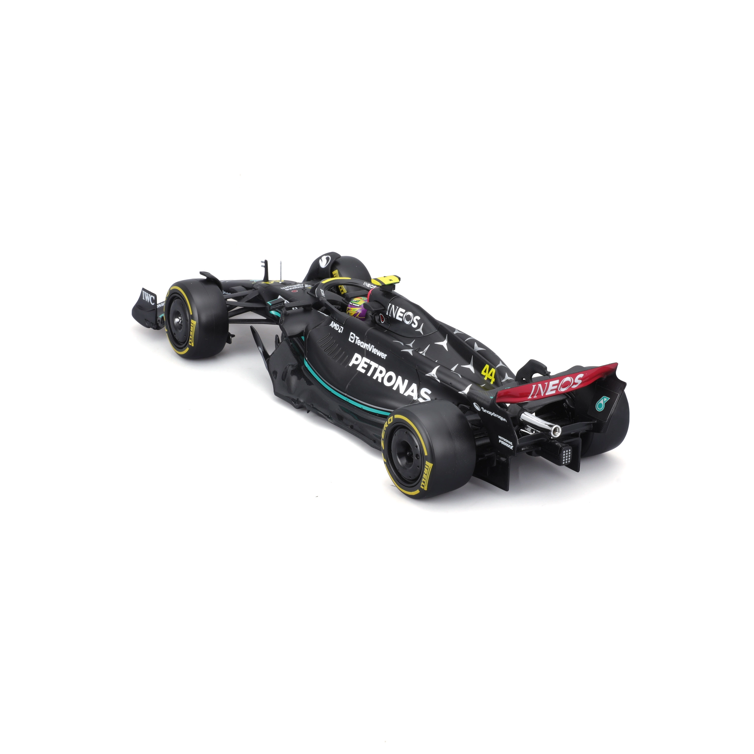 • Apparence officielle de l’équipe – livrée noire de la W14 E saison 2023 et numéro 44.