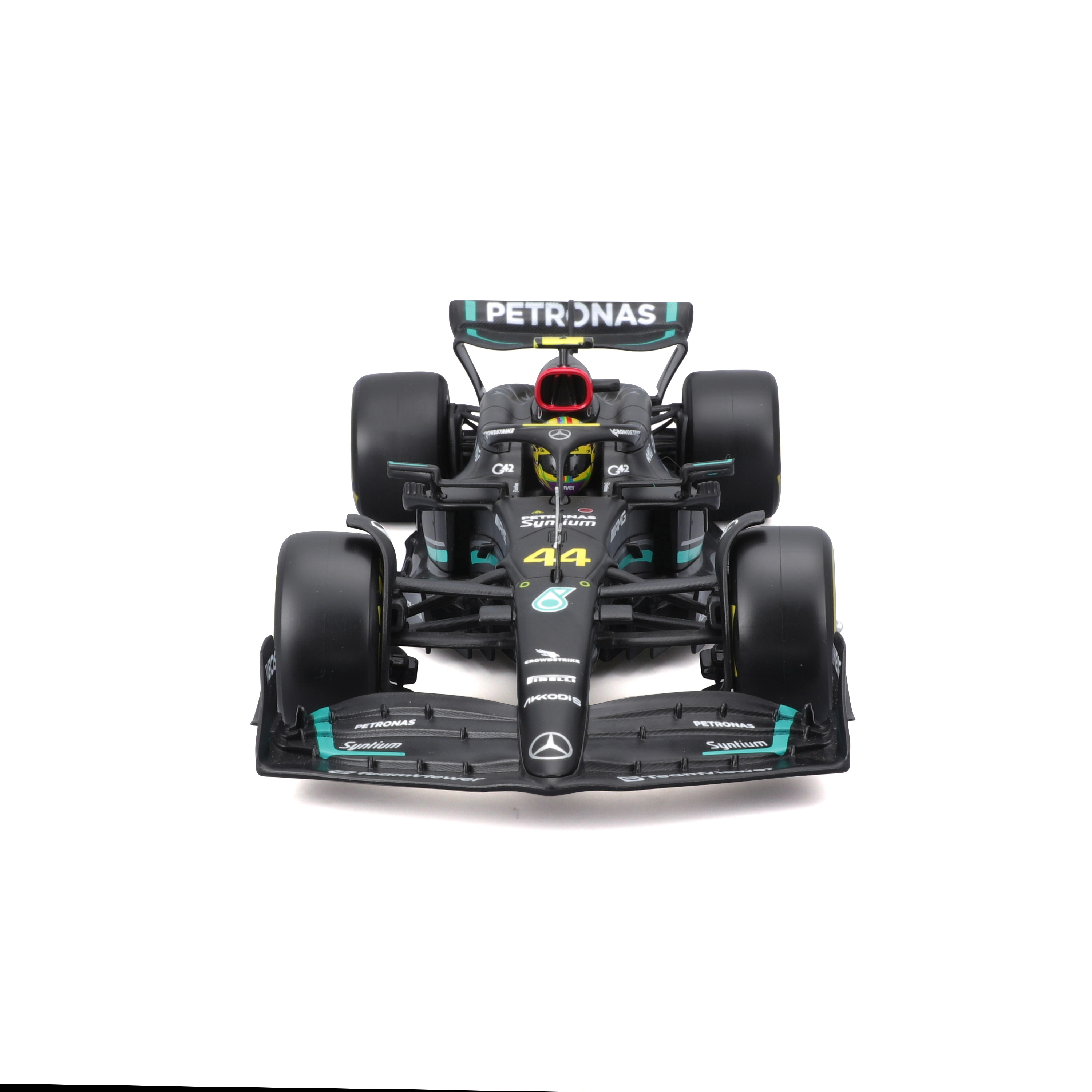 Pièce de collection au look officiel du Mercedes-AMG Petronas F1 Team pour la saison 2023, idéale pour les fans et pour l’exposition.