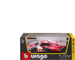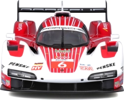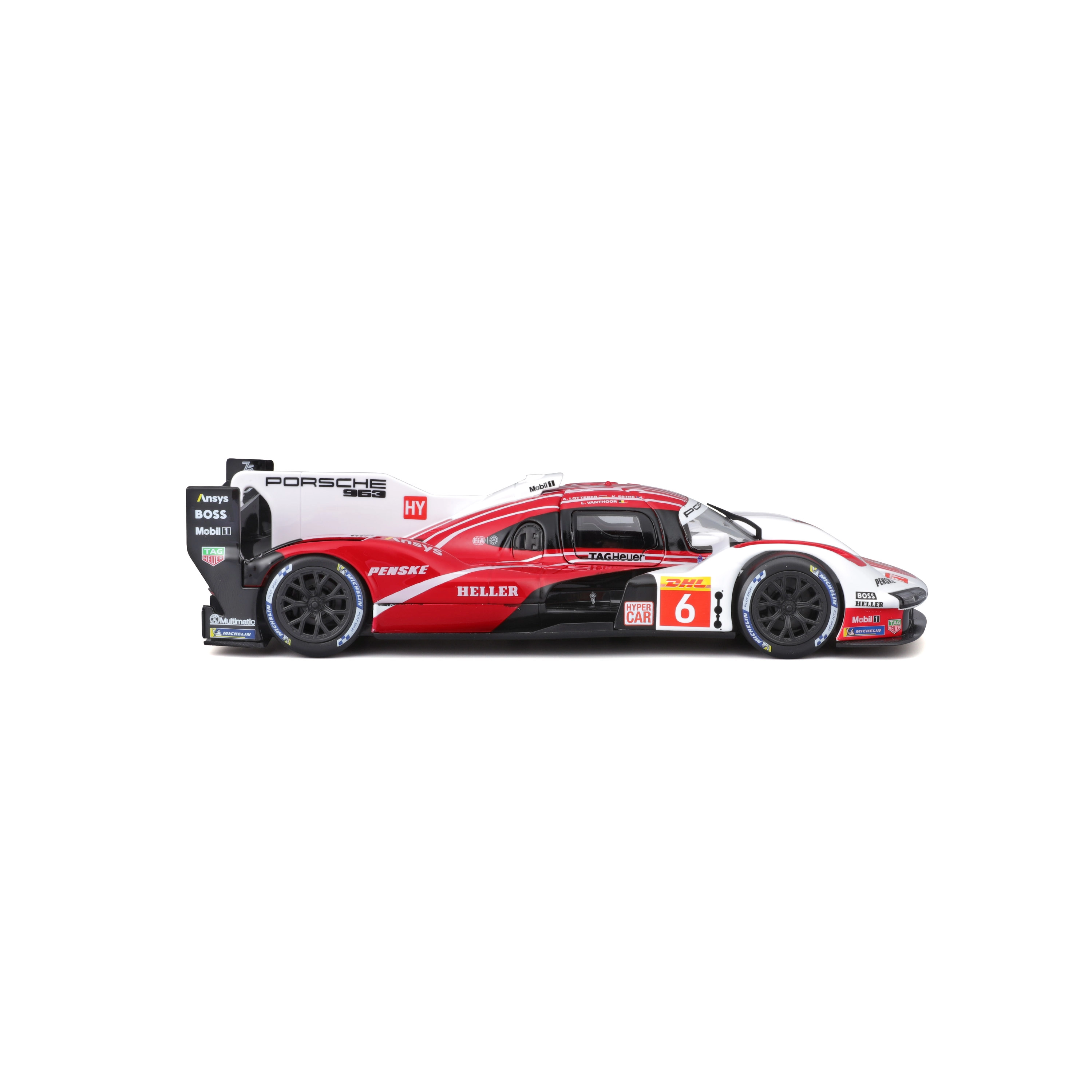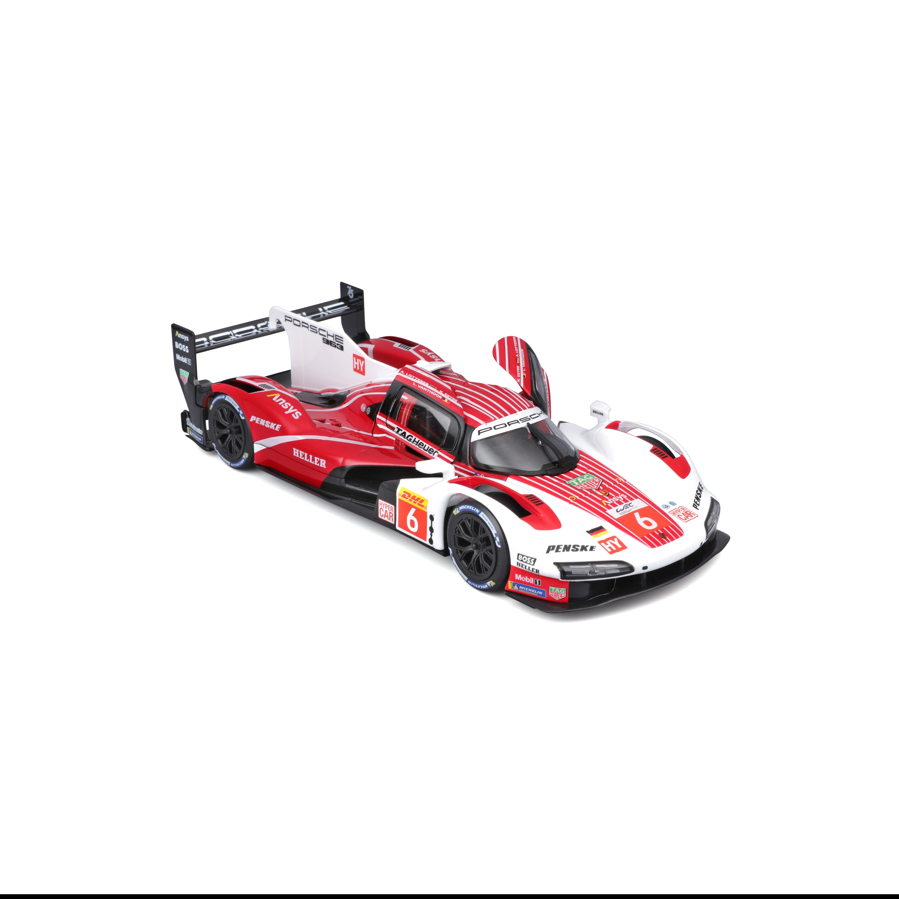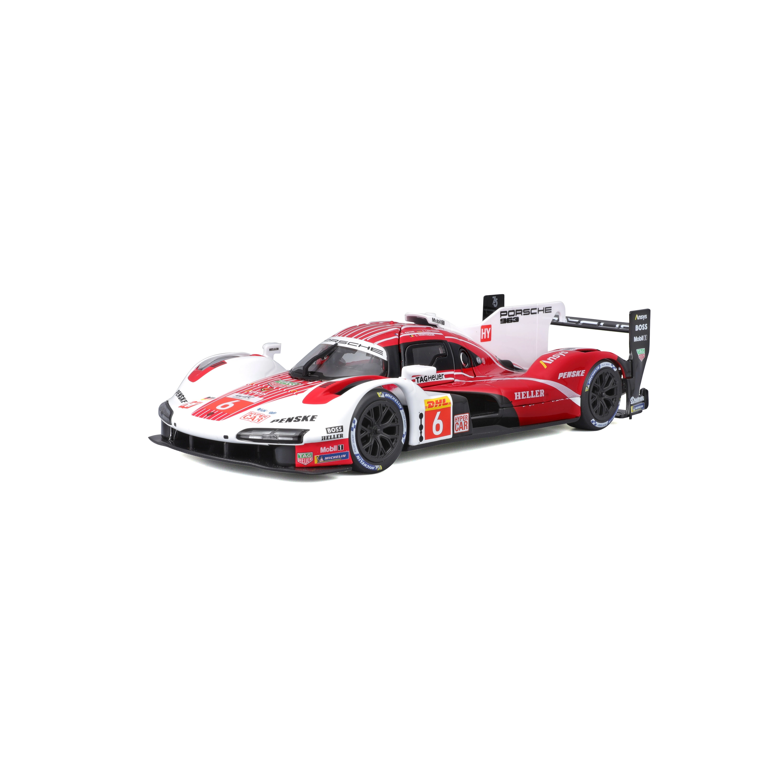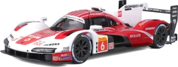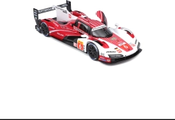 Le modèle Bburago 1:24 capture fidèlement le caractère du prototype d’endurance PORSCHE 963 (2024) dans une livrée de course rouge et blanche avec logos de sponsors. Carrosserie métallique avec éléments en plastique, lignes précises et éléments aérodynamiques authentiques soulignent la valeur de collection et l’allure exposée.