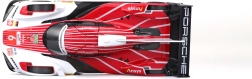 Proportions exactes de la PORSCHE 963 avec splitter, dérives et imposant aileron arrière pour un look de course authentique en vitrine.