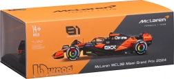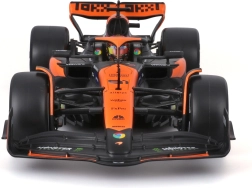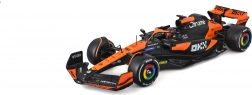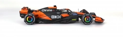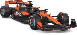 Profitez de la finition haut de gamme du modèle McLaren MCL38 dans sa livrée orange et noire, qui reproduit fidèlement la voiture du Miami Grand Prix 2024. Carrosserie réaliste, ailes et détails du cockpit avec le pilote font de ce modèle un complément parfait à toute collection F1.