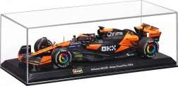 Modèle de collection détaillé de la Formula 1 McLaren MCL38 (2024) à l’échelle 1:24 par Bburago avec le pilote Oscar Piastri. Le modèle séduit par la fidélité de sa carrosserie, ses décalcomanies authentiques, ses pneus slick et ses fins éléments aérodynamiques. Inclus: une vitrine de protection rigide qui protège le modèle de la poussière tout en l’exposant avec élégance.
