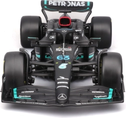 Enrichissez votre collection avec la monoplace emblématique de la saison 2023 – la MERCEDES‑AMG F1 W14 E aux couleurs de l’équipe PETRONAS. Cette réplique sous licence de Bburago à l’échelle 1:24 se distingue par des proportions exactes, une peinture authentique, des slicks réalistes et de fins détails de carrosserie, incluant le halo et les ailerons.