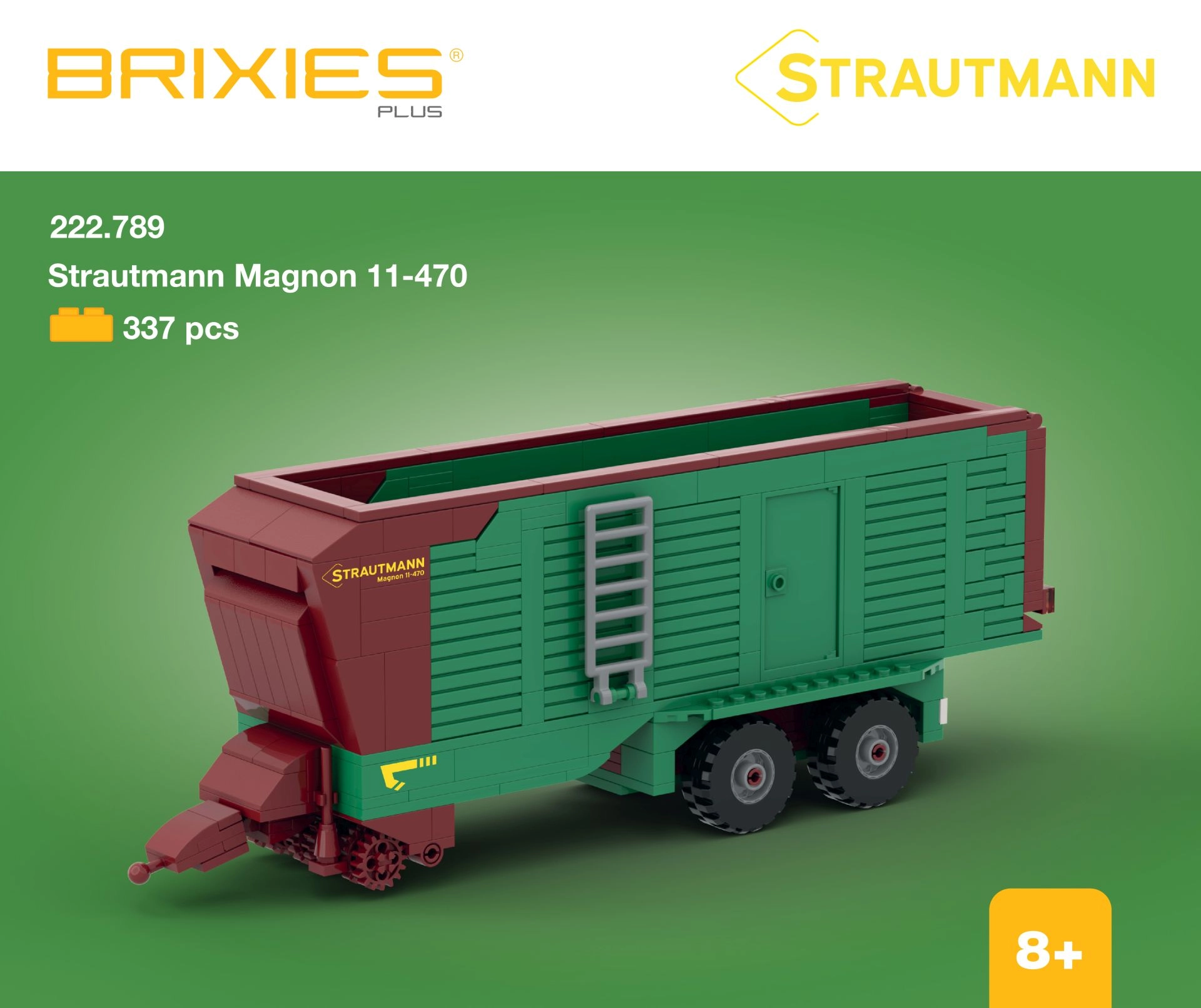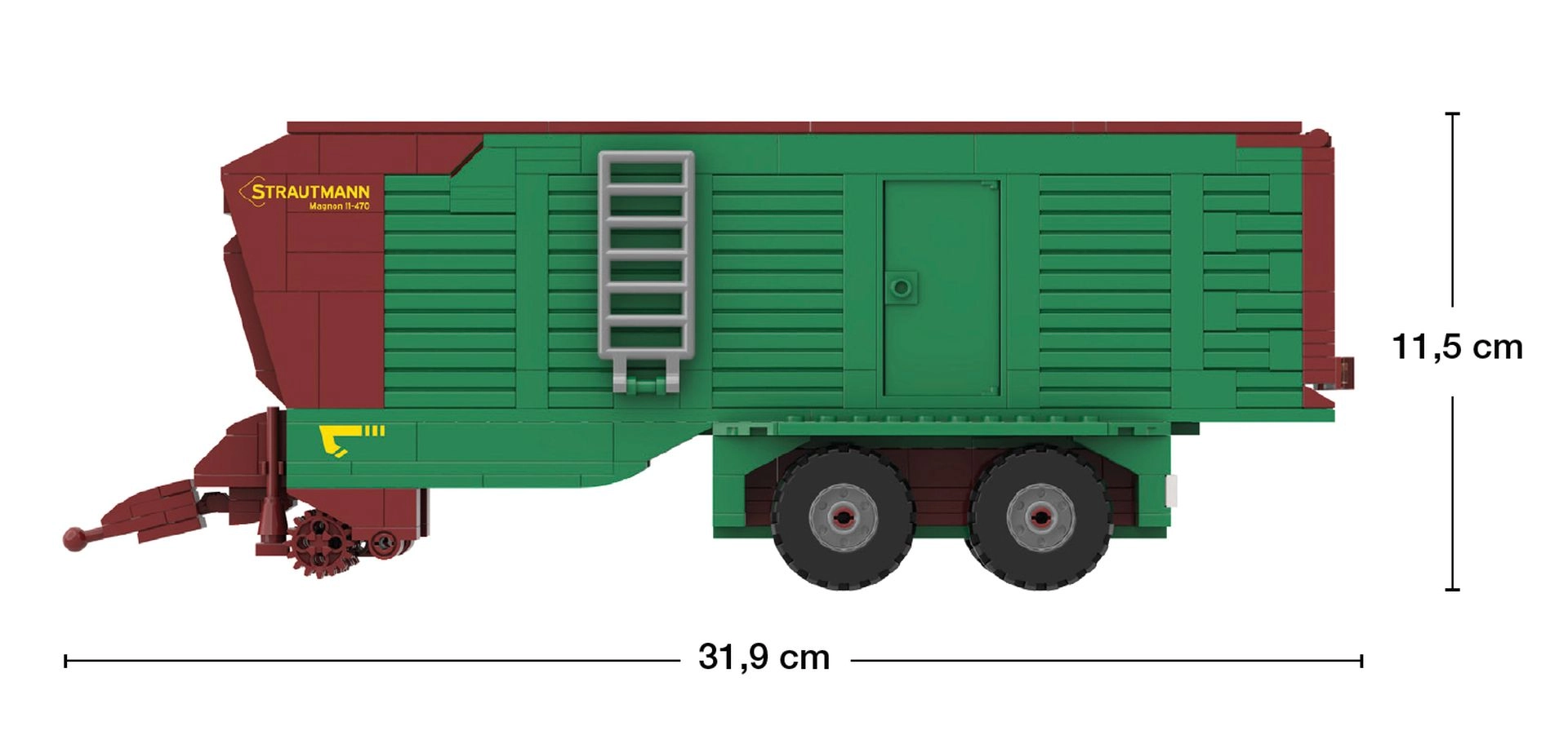 Cette maquette minutieusement conçue propose un modèle réaliste du Strautmann Magnon 11-470 inspiré d’une machine réelle. Une fois assemblé, il atteint environ 31,9 × 11,5 × 8 cm (L × H × l). Les pièces plus grandes de la gamme BRIXIES Plus garantissent un assemblage confortable et une grande stabilité.