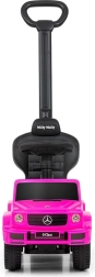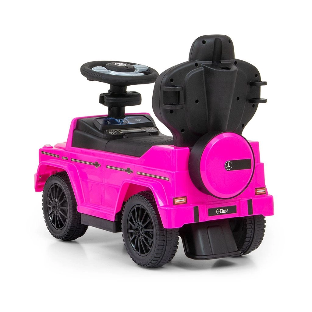 La draisine sous licence MERCEDES G350d en rose ressemble à un véritable tout-terrain et motive les enfants à bouger, tout en entraînant l’équilibre et la motricité. Grâce au haut dossier, aux accoudoirs latéraux et à la barre de guidage, elle convient aux enfants sachant déjà s’asseoir, mais aussi aux petits marcheurs. Après retrait de la barre de guidage, des accoudoirs et des repose-pieds, elle se transforme en draisine classique.