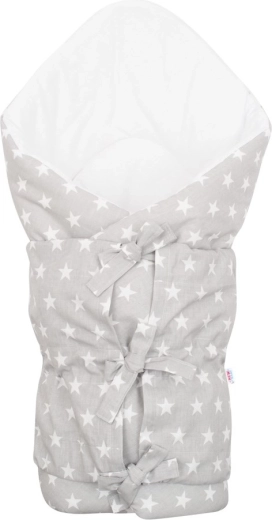 La couverture d’emmaillotage traditionnelle à lacets au design moderne Étoiles combine confort éprouvé et matériaux sûrs. Grâce aux trois rangées de rubans, bébé est facilement et solidement emmailloté, ce qui lui procure un sentiment de sécurité et facilite l’endormissement. La couleur gris-blanc est universelle et s’accorde parfaitement avec le trousseau.