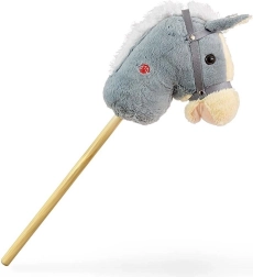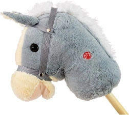 Adorable Hobby Horse de la marque Milly Mally en gris, offrant aux enfants un amusement sans fin à la maison comme en extérieur. Il possède une tête en peluche douce, une tige en bois solide et des sons réalistes de galop et de hennissement. Grâce à sa construction sûre et à des matériaux agréables, il développe l’imagination, la motricité et la condition physique lors du jeu actif.