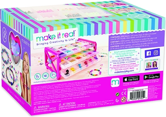 Tout le nécessaire est à portée de main : 2600 perles pour des combinaisons illimitées, 8 cordons cirés colorés d’une longueur de 8 m chacun et un cordon élastique de 4 m. Le kit est idéal pour créer à la maison, pour des ateliers et comme cadeau pour de jeunes bijoutiers.