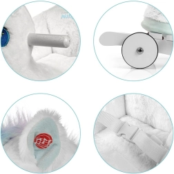 La matière douce est agréable au toucher et, en appuyant sur les oreilles, on entend des bruits de galop et des hennissements joyeux. Les piles sont rangées en toute sécurité dans le corps du jouet.