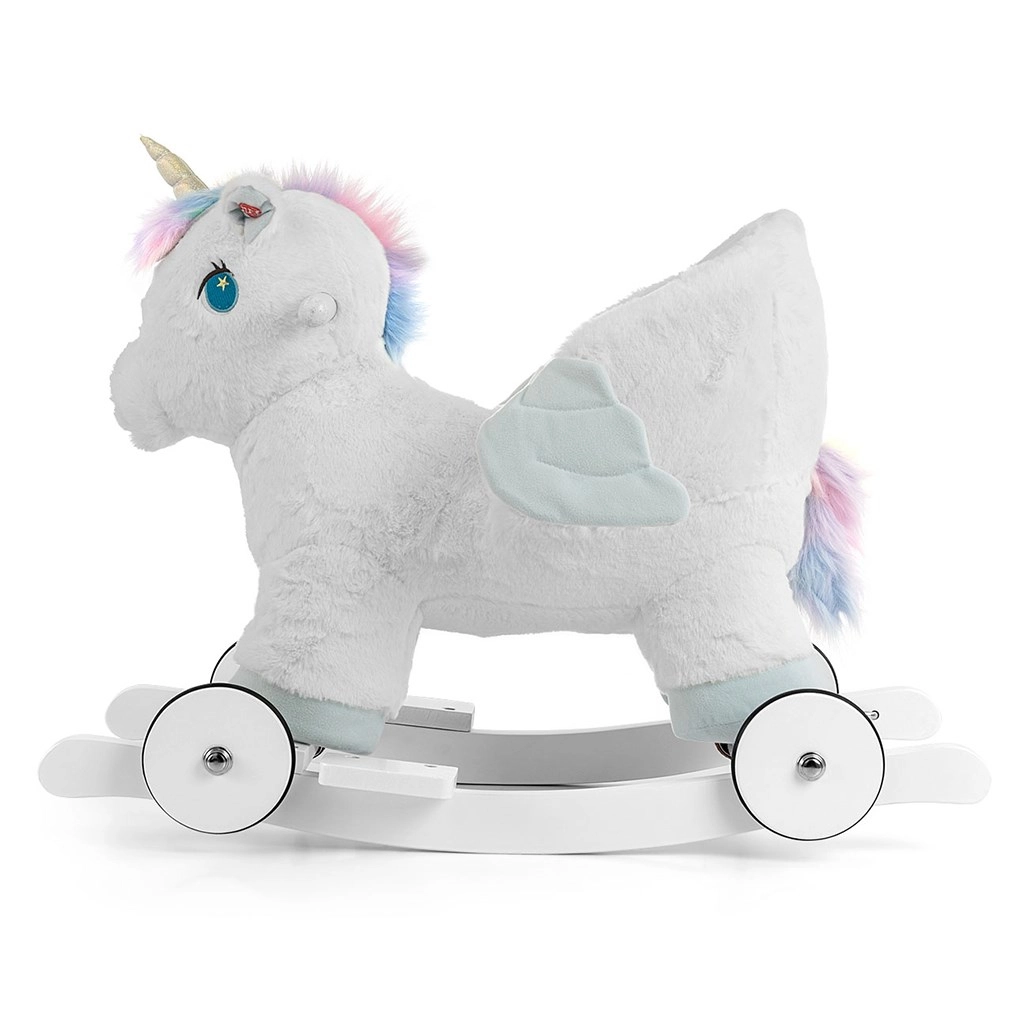 Les roulettes escamotables transforment en un instant la licorne de jouet à bascule en petit véhicule roulant. Parfait pour un jeu polyvalent en intérieur.