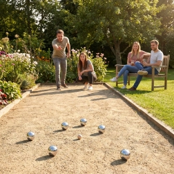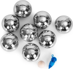 Les boules en acier chromé allient résistance et élégance. Trois motifs de rainurage différents permettent une identification rapide pendant la partie. Le cordon de mesure fourni aide à déterminer précisément qui est le plus proche – un jeu équitable sans discussions.
