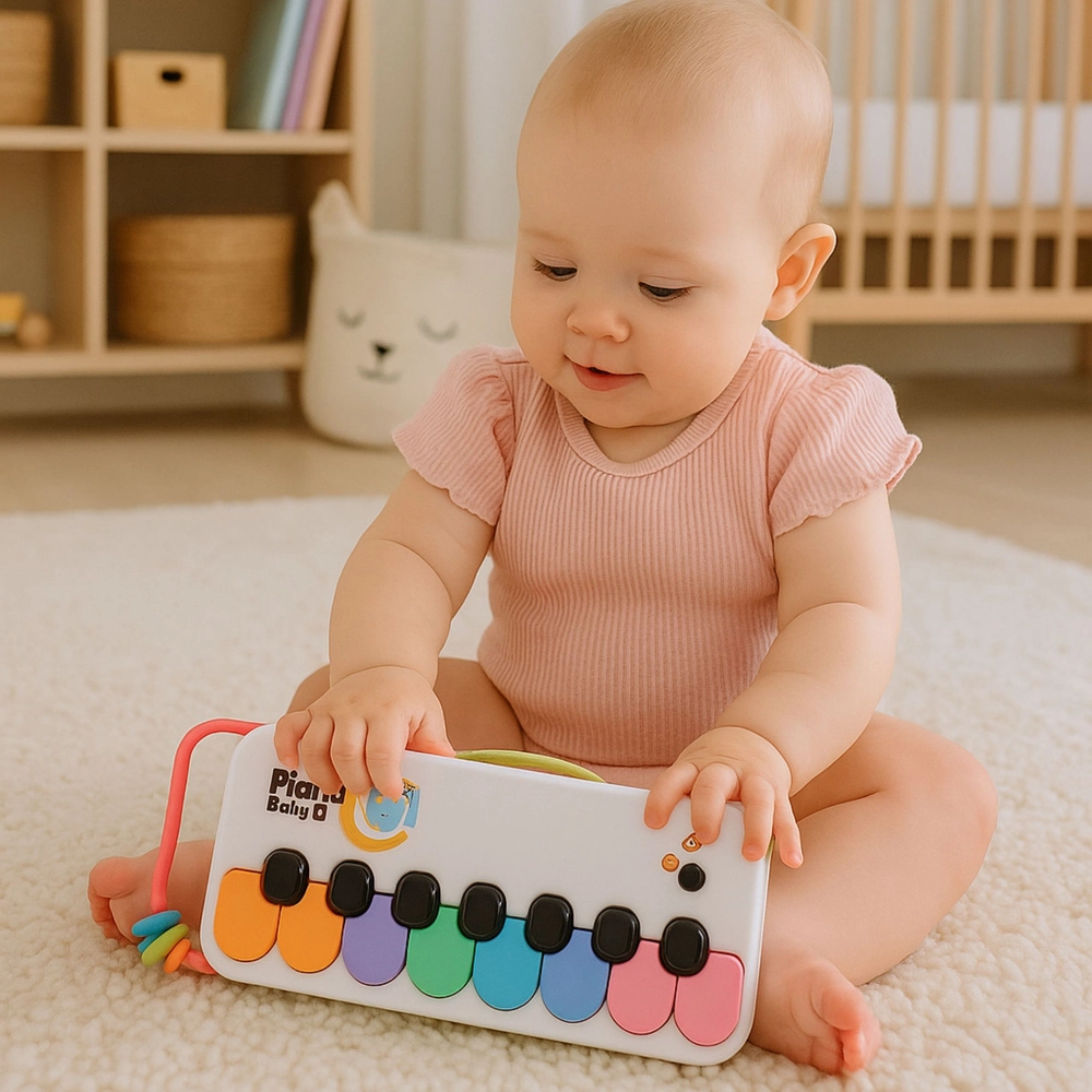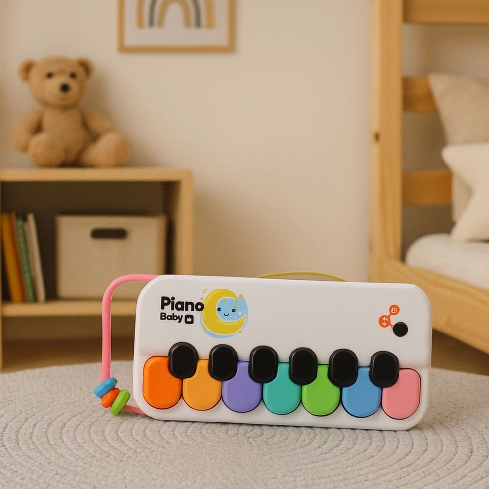 Ce petit piano interactif et coloré pour les tout-petits développe l’ouïe, le sens du rythme et l’imagination. Grâce à ses 8 touches multicolores, à ses effets sonores agréables et à son design léger et portable avec dragonne facile à saisir, il est idéal à la maison, à la crèche et en voyage. Fabriqué avec des matériaux sûrs, parfait pour les petites mains.