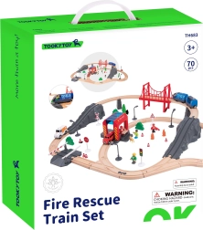 ensemble de train en bois pompiers et ambulance 70 pièces – TOOKY TOY