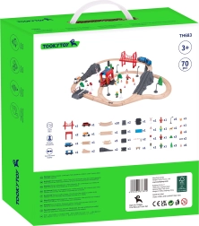 • 70 pièces pour un jeu riche : rails, pont, tunnels, signalisation routière, feux, figurines, animaux, caserne de pompiers, voiture de pompiers, ambulance, train et wagon.