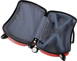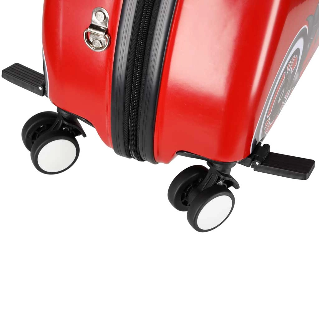 La valise enfant à roulettes motif moto transforme l’attente à l’aéroport et le voyage en moment ludique. L’enfant s’assoit confortablement et peut se faire tirer, tandis que les coins poignées avant offrent une prise en main sûre pendant la « conduite ». La combinaison astucieuse de deux grandes roues arrière fixes et de deux roulettes avant pivotantes à 360° assure stabilité et excellente maniabilité.