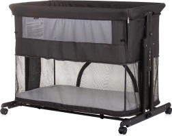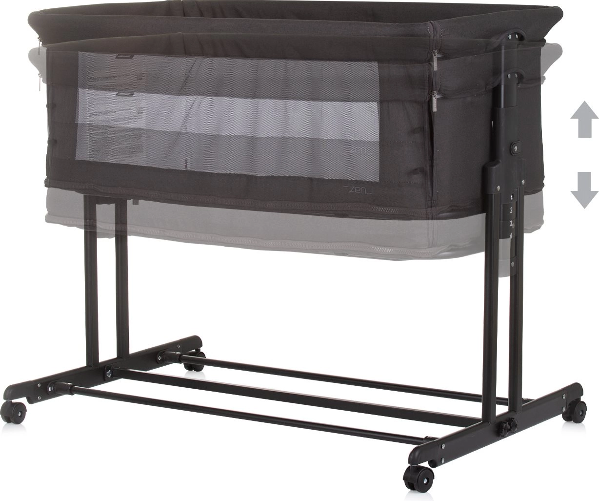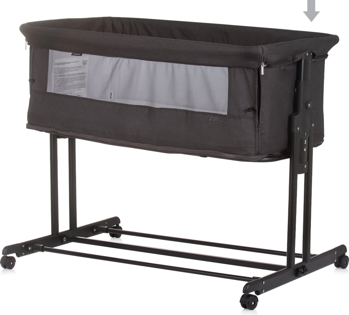 CHIPOLINO Zen Obsidian est un cododo et lit pour nouveau-nés jusqu’à 6 mois (jusqu’à 9 kg), que vous pouvez facilement transformer en parc pour enfants jusqu’à 15 kg. Les côtés en maille respirante assurent la circulation de l’air et le contact visuel, tandis que la longue barrière latérale escamotable permet de garder bébé toujours tout près.