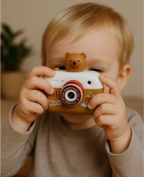 L’appareil photo interactif capybara est un jouet ludique et éducatif qui développe l’imagination des enfants et leur motricité fine. Il combine des effets lumineux et sonores, joue des mélodies et, grâce au projecteur, affiche 8 images en couleur sur le mur ou le plafond. L’enfant apprend en plus les noms anglais des images, ce qui favorise une acquisition naturelle de la langue.