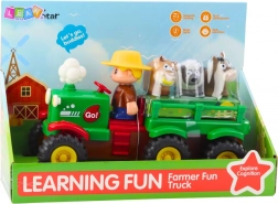 Découvrez l’univers de la ferme avec le set interactif FARMER FUN TRUCK. En appuyant sur le bouton « GO », les lumières s’allument, les sons du moteur retentissent et la cheminée du tracteur monte et descend, simulant fidèlement le fonctionnement de la machine. Grâce à la fonction Magnetic Sensing, en plaçant la figurine du fermier au bon endroit, des sons joyeux supplémentaires s’activent.