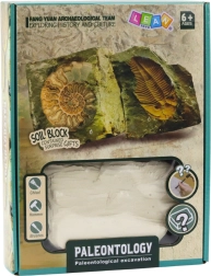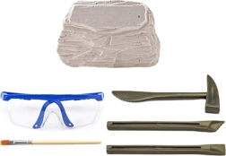 Découvrez le monde préhistorique fascinant avec ce kit éducatif pour petits explorateurs. Dans le bloc de plâtre se cache une fossile aléatoire (p. ex. trilobite, anomalocaris, archéoptéryx, cycas ou œuf de dinosaure) que l’enfant met au jour avec précaution à l’aide du burin, du marteau et des pinceaux. Un divertissement qui développe la patience, la motricité fine et la concentration – l’alliance idéale entre jeu et apprentissage.