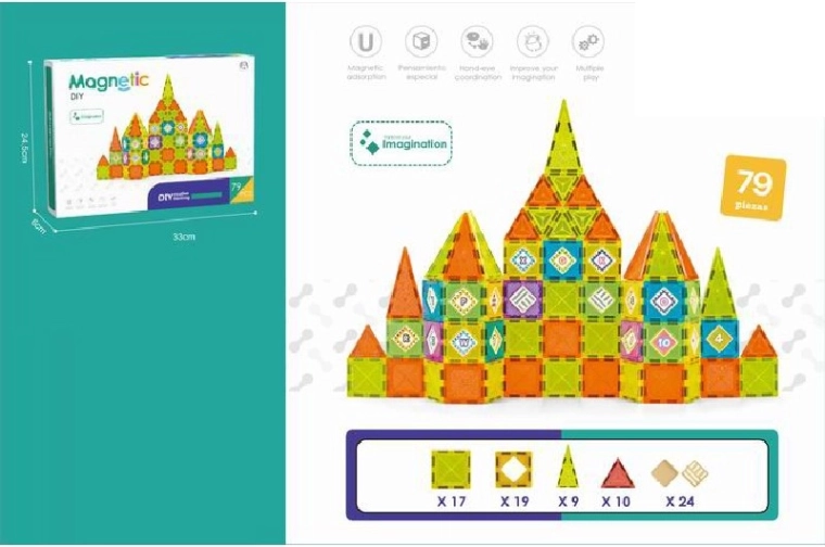 Ce jeu de construction magnétique développe la motricité fine, la représentation spatiale et la créativité. Les aimants fermés à l’intérieur des pièces garantissent une utilisation sûre, tandis que le matériau ABS résistant et les assemblages rivetés prolongent la durée de vie même en cas d’usage fréquent.