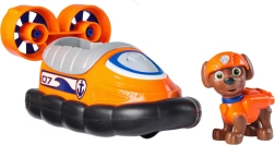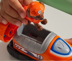 Partez en missions de sauvetage aquatiques avec le chiot Zuma, le sauveteur en milieu aquatique de la PAW PATROL. Le hovercraft stylé orange et gris, équipé de roues mobiles, assure un déplacement fluide sur le sol, et la figurine fidèle de Zuma, avec équipement et casque orange, prépare les enfants à des heures de jeu créatif.