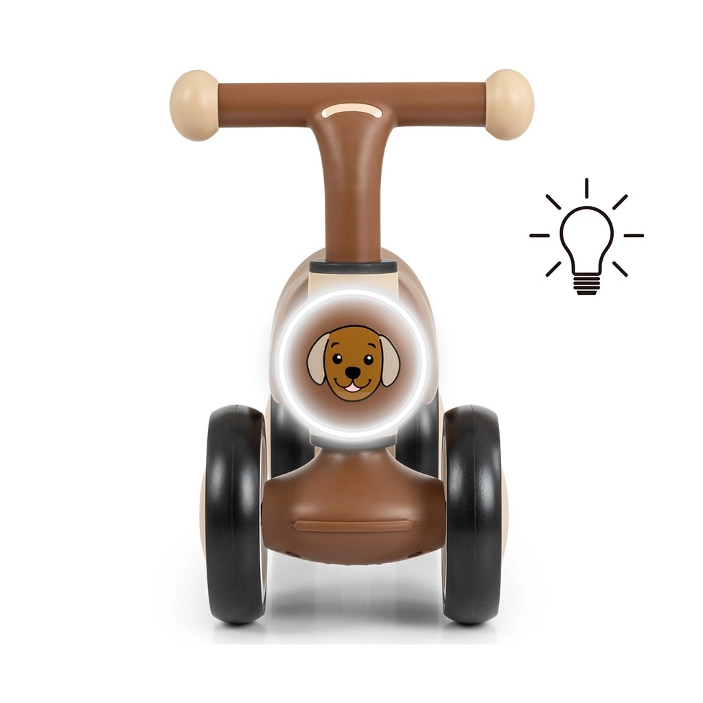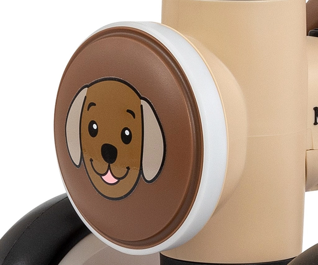 Les parents apprécieront le montage rapide, la construction solide et la charge maximale de 25 kg. Le feu avant LED (à piles) améliore la visibilité et l’attrait, tandis que les mélodies et sons d’animaux transforment chaque trajet en une joyeuse aventure.