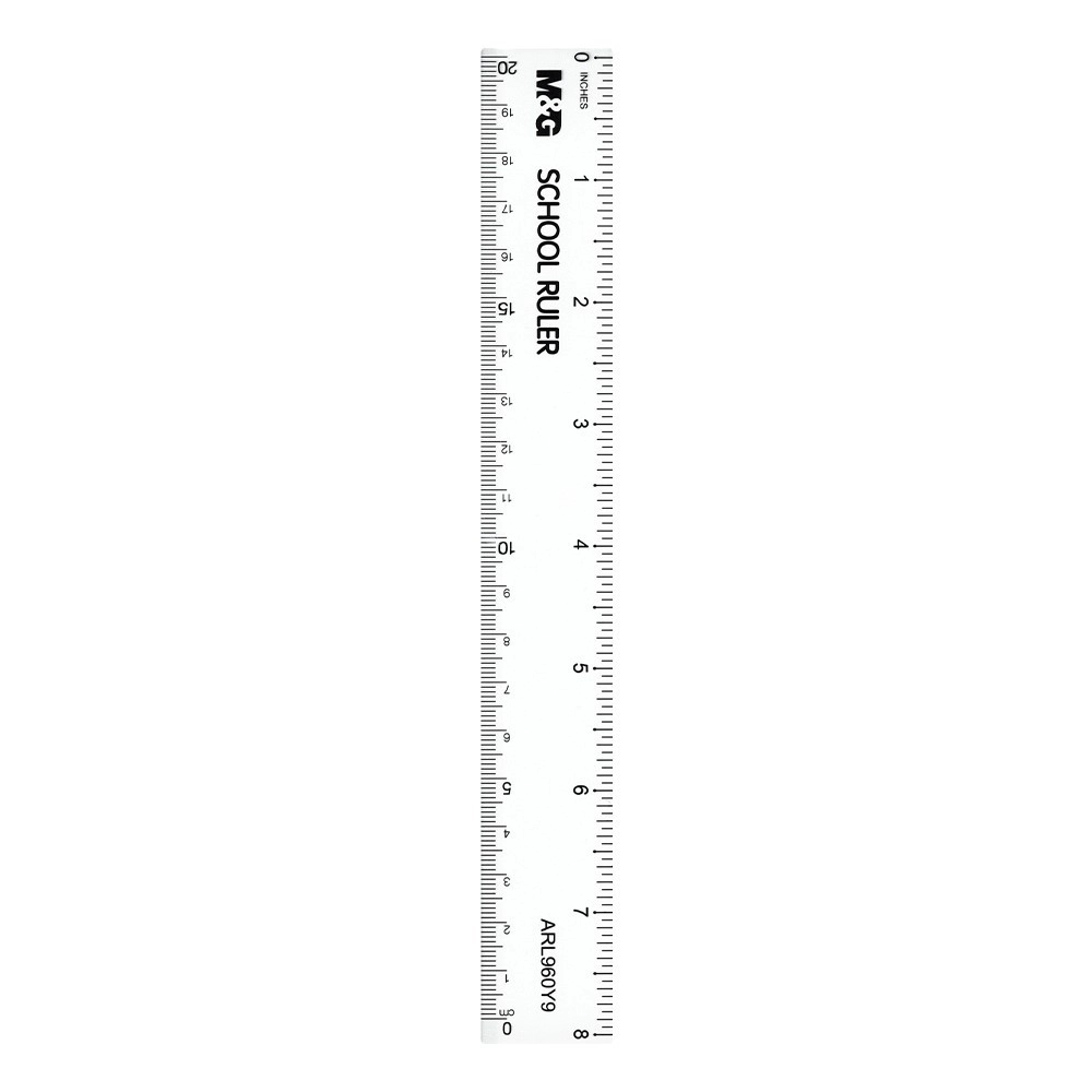 Règle en plastique M&G légère et résistante de 20 cm, transparente, idéale pour l’école, le bureau et la maison. Grâce à une graduation claire et lisible, elle permet des mesures et tracés précis, tandis que le matériau transparent offre un meilleur contrôle du support pendant le travail.