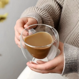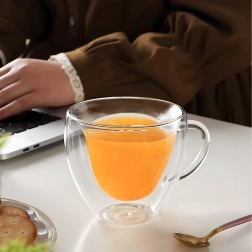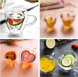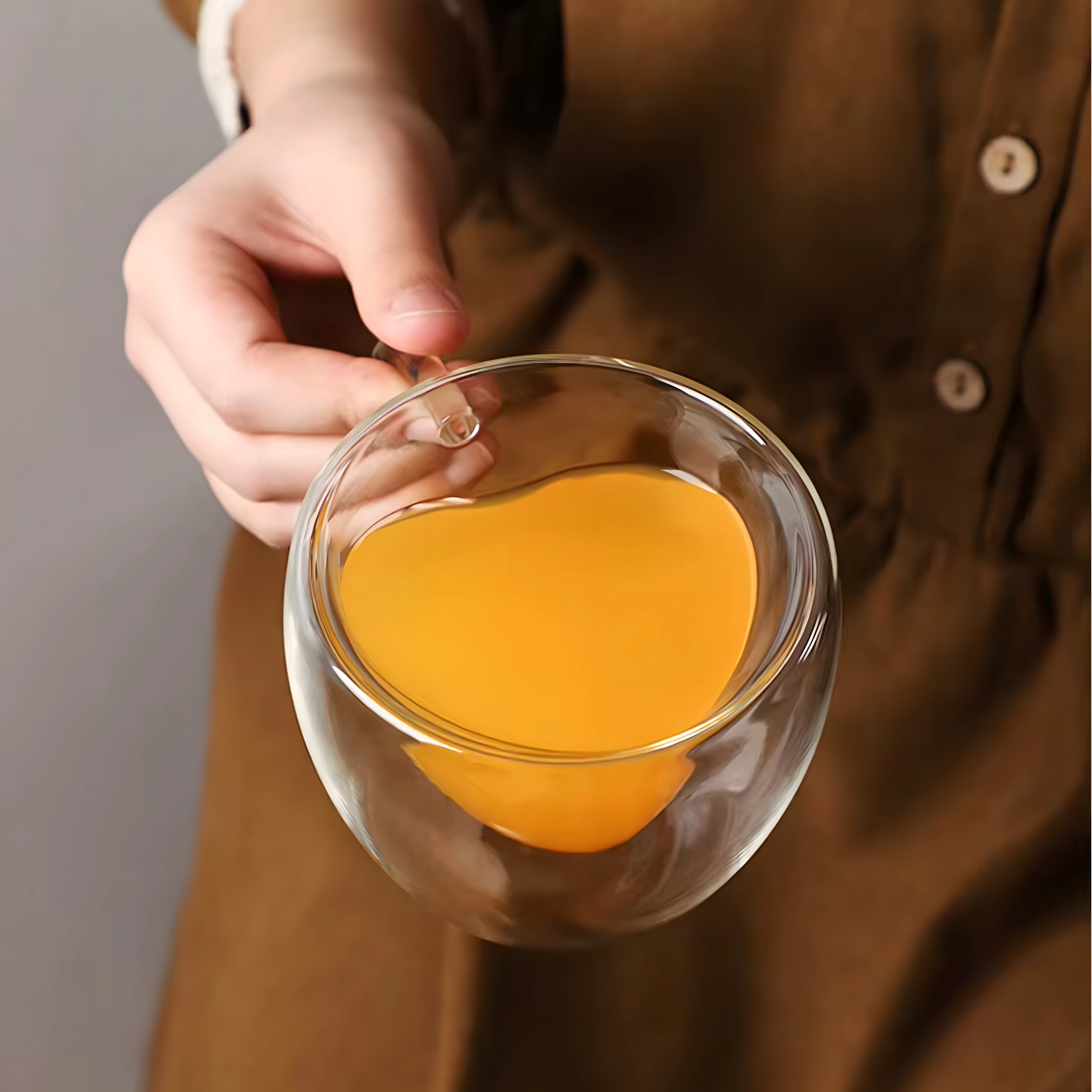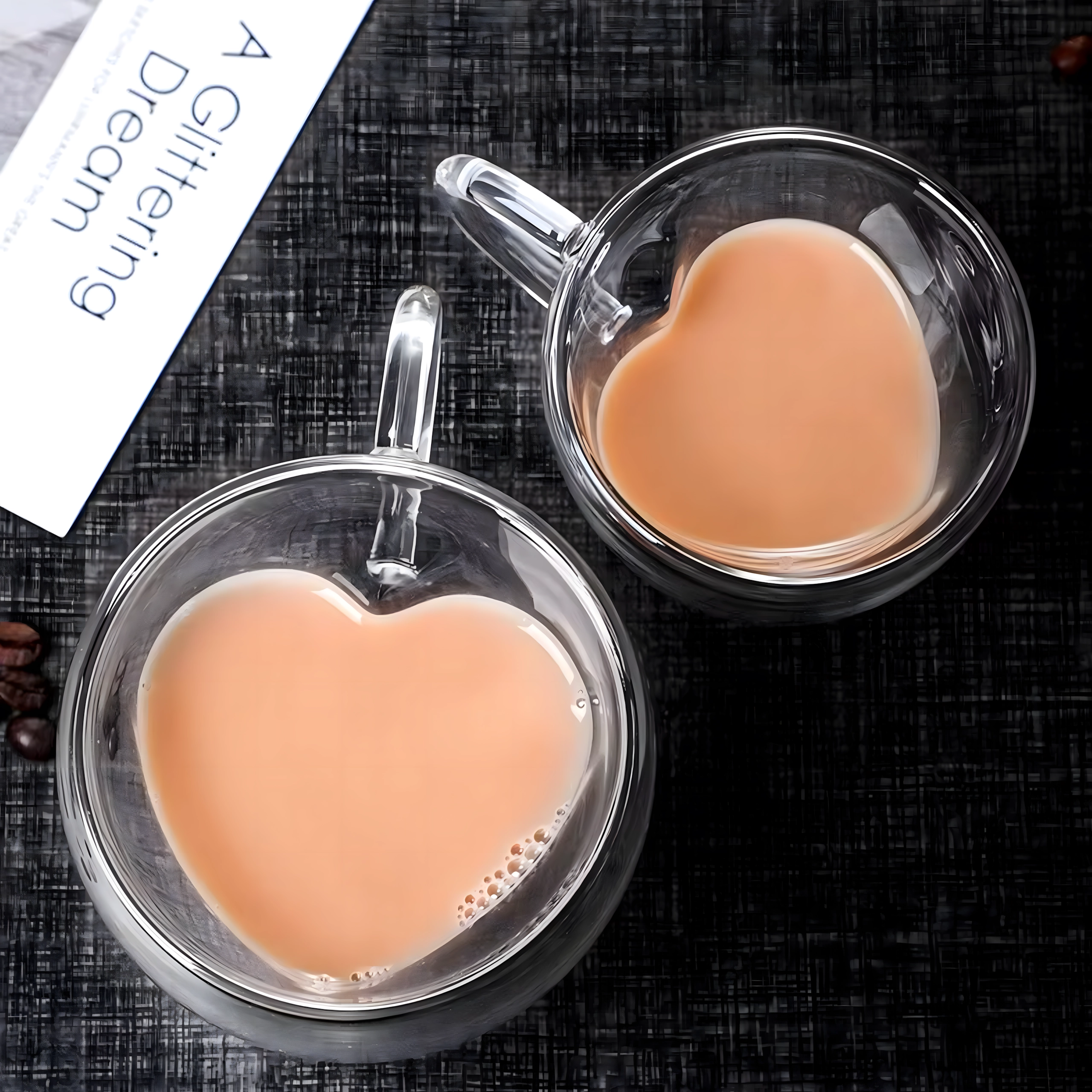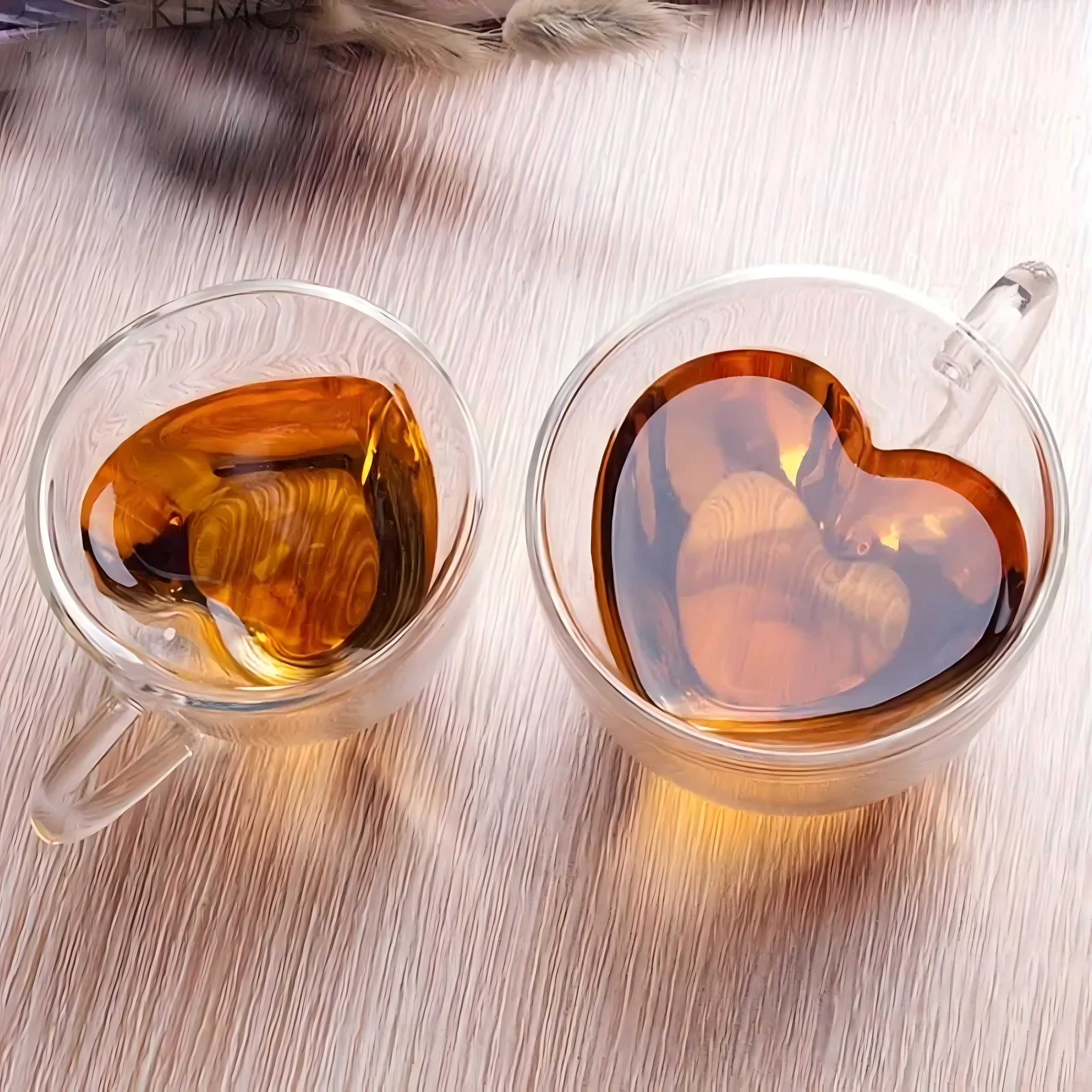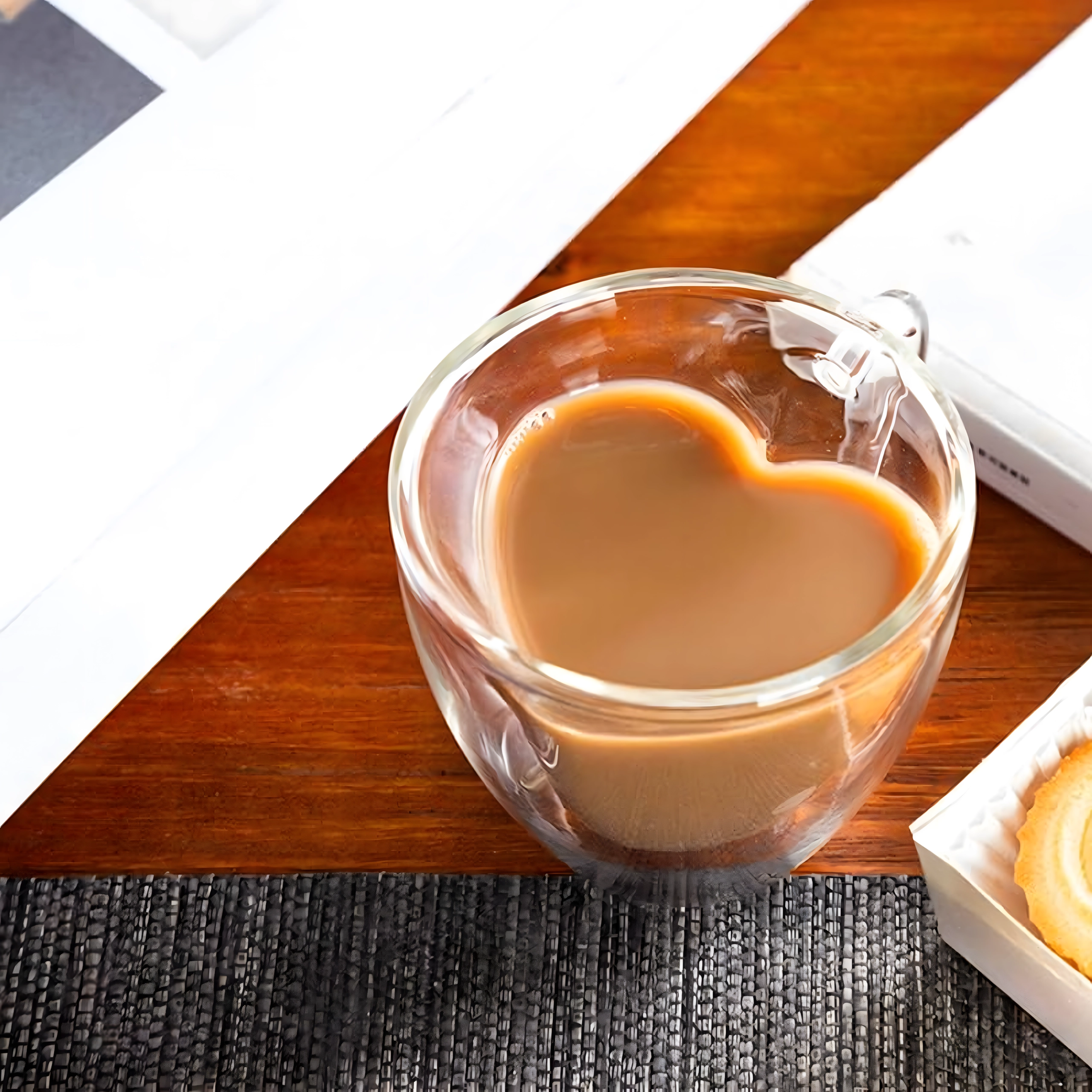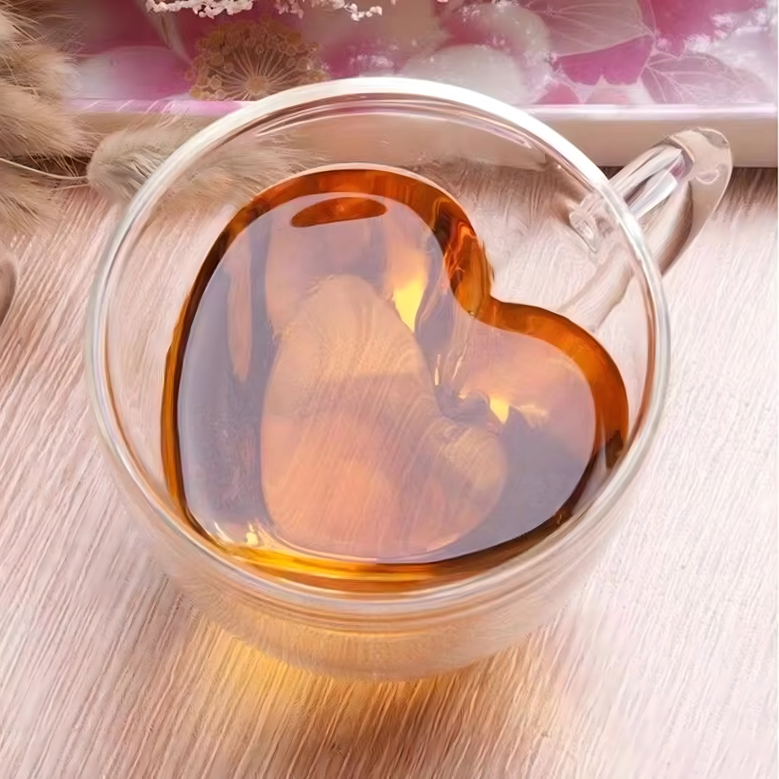 Tasse en verre en forme de cœur 250 ml à double paroi, verre borosilicaté résistant à la chaleur